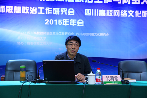 会上,敬枫蓉和王万民分别总结了两个研究会2015年工作开展情况,并对研究会下一步的工作进行了安排部署。敬枫蓉介绍了四川高校网络文化研究会成立的背景、成立以来的发展情况以及取得的成绩,她说,研究会自成立以来,完善运行机制,并依托省哲社重点基地,搭建了良好的学术交流平台。她还进一步分析了当前工作形势及下一步的任务,她指出,研究会要明晰定位、挖掘网络文化的育人功能;要依托平台、注重理论与实践相结合;要与时俱进、善于创新和突破,在研究高校网络文化现状和发展,实践优秀高校网络文化成果,交流各高校网络文化建设经验上不断努力。