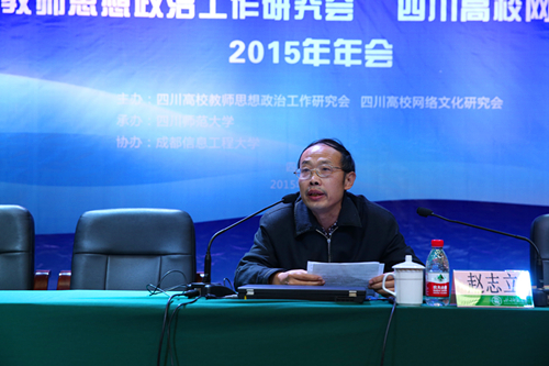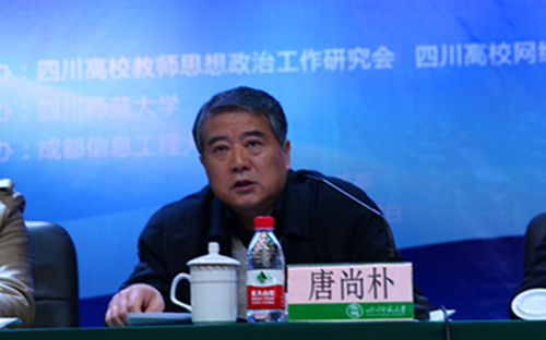 唐尚朴致辞,对川内各高校代表的到来表示热烈欢迎,并介绍了四川师范大学加强和改进教师思想政治工作的做法、特色和经验。