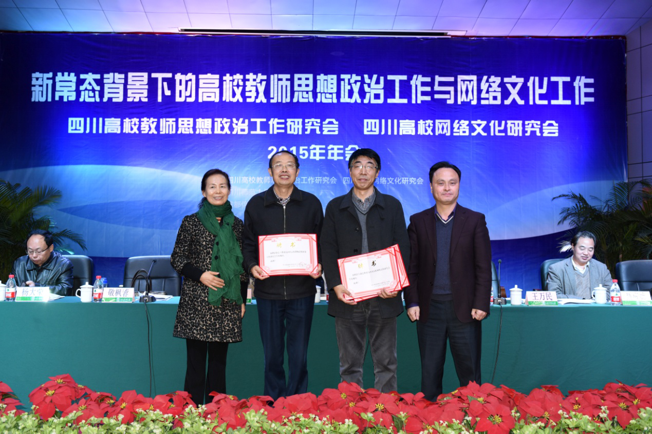 随后,敬枫蓉和王万民向电子科技大学马克思主义教育学院党委书记、博士生导师吴满意教授,四川省社会科学院网络与新媒体研究中心主任、赵志立研究员颁发了研究会学术顾问聘书。