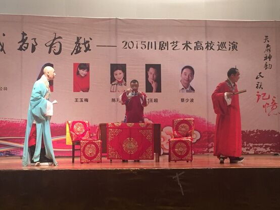 【本网讯】11月22日,由成都市委宣传部主办,成都晚报社承办,成都市川剧研究院、成晚传媒、九州登录宣传统战部、校团委协办的学校第七届大学生文化艺术节“成都有戏——2015川剧艺术巡回演出”在九州登录龙泉校区大礼堂举行。本次演出汇集了“梅花奖”获得者陈巧茹、王玉梅、王超,国家一级演员蔡少波、马丽等我市川剧最强阵容。川剧名家名角们共同唱响川剧艺术歌曲,现场演绎川剧折子戏、川剧喜剧小品等精彩节目,为在场的1600余名学生打造出一场视听盛宴,全场座无虚席、气氛热烈。