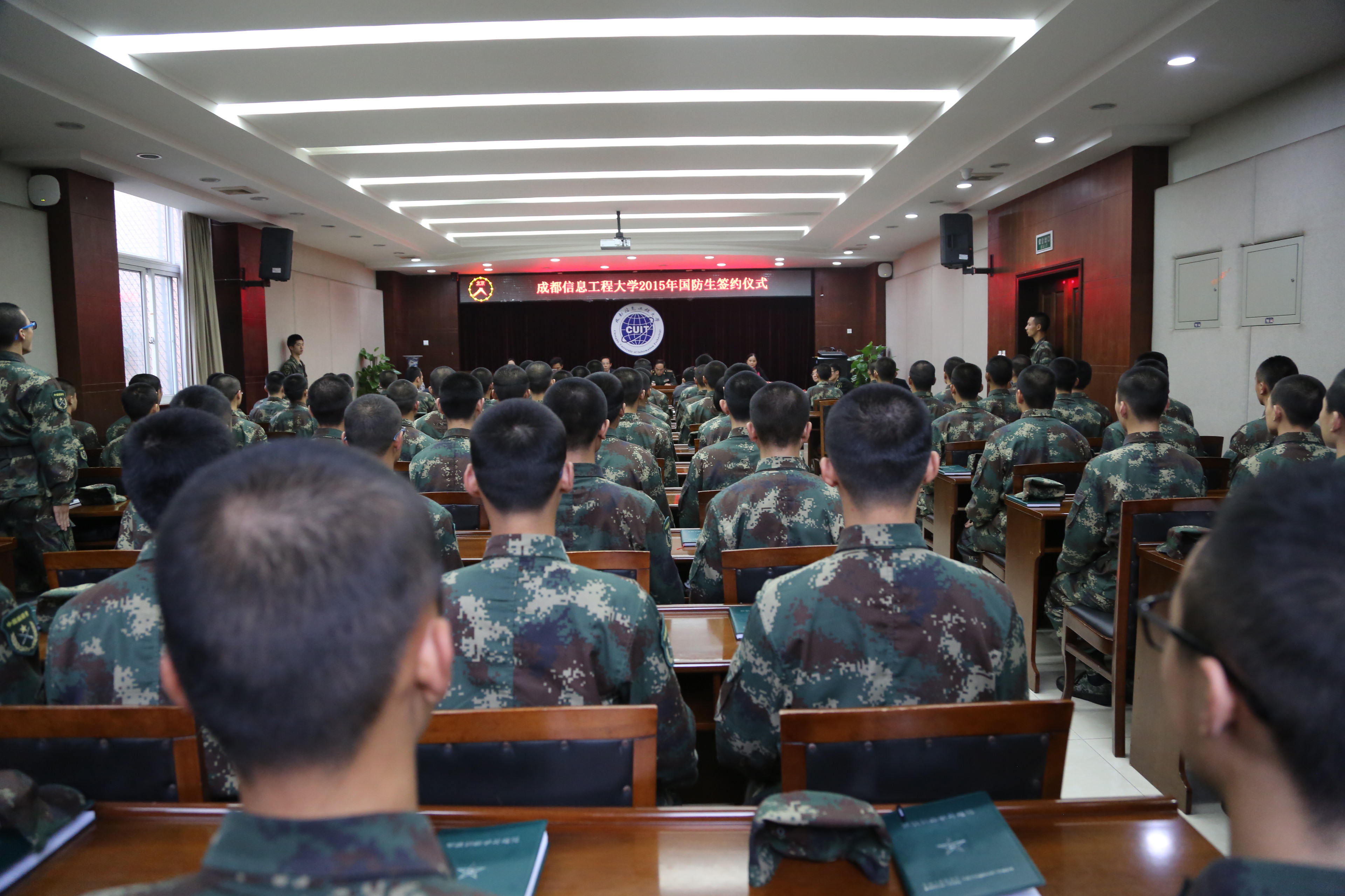 最后,国防生签约仪式在嘹亮的中国人民解放军军歌声中圆满结束。