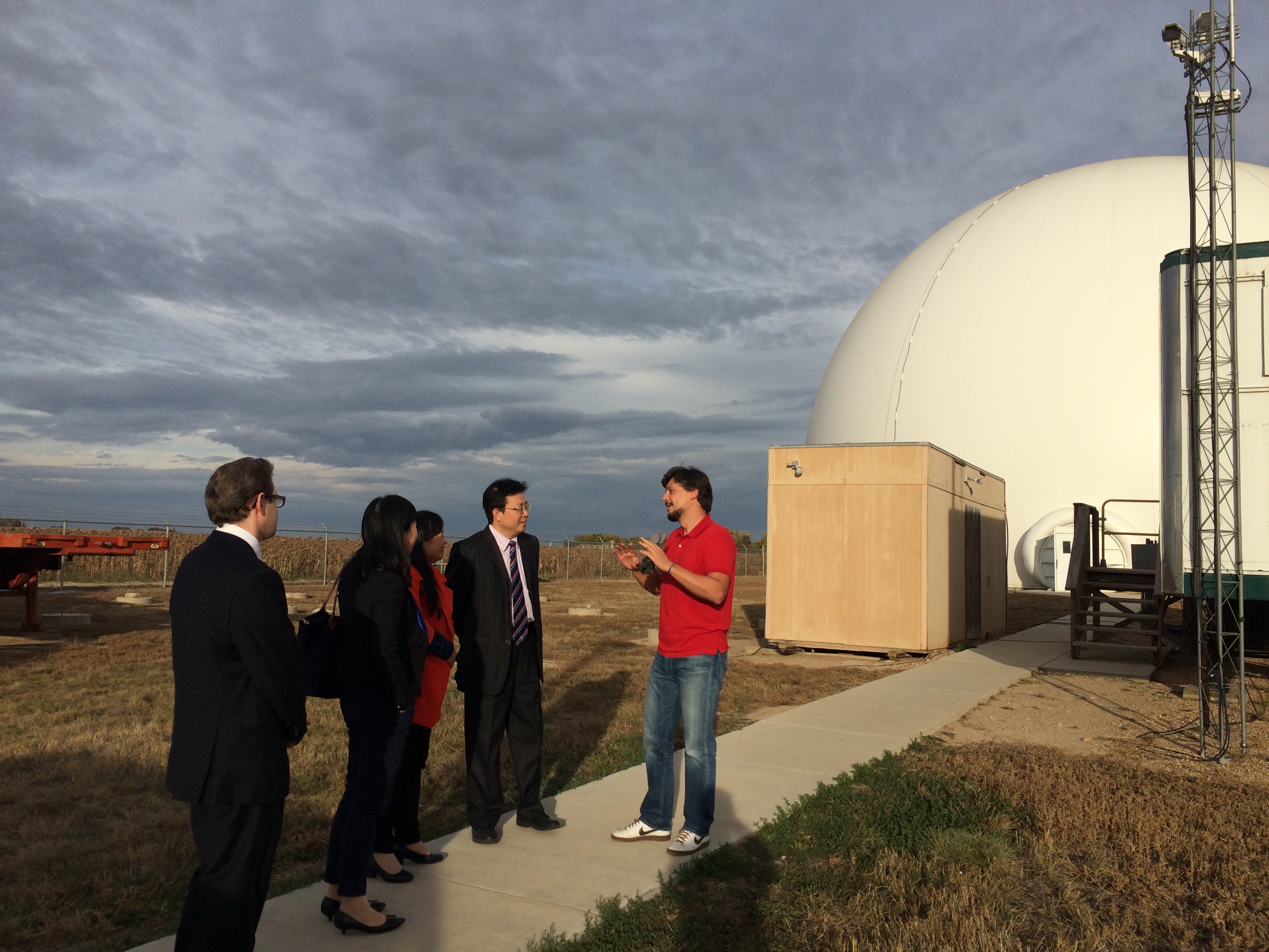 代表团一行前往福特科林斯东部,参观了由美国国家科学基金与科罗拉多州立大学联合资助的CSU-CHILL雷达设施,科罗拉多州立大学工程学院研究员Francesc陪同参观,介绍了其X-band和S-band雷达性能,并就相关技术问题进行了交流讨论。