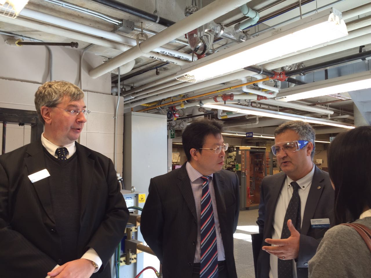 会后, 在Iain McNab和FarzadRayegani的陪同下,代表团前往谢尔丹学院化学工程实验室和机器人实验室进行参观考察,对其工程专业学生自主学习(如赛车设计和制作)、CDIO工程教育改革理念的执行以及校企合作方面的产业成果进行了深入的了解。