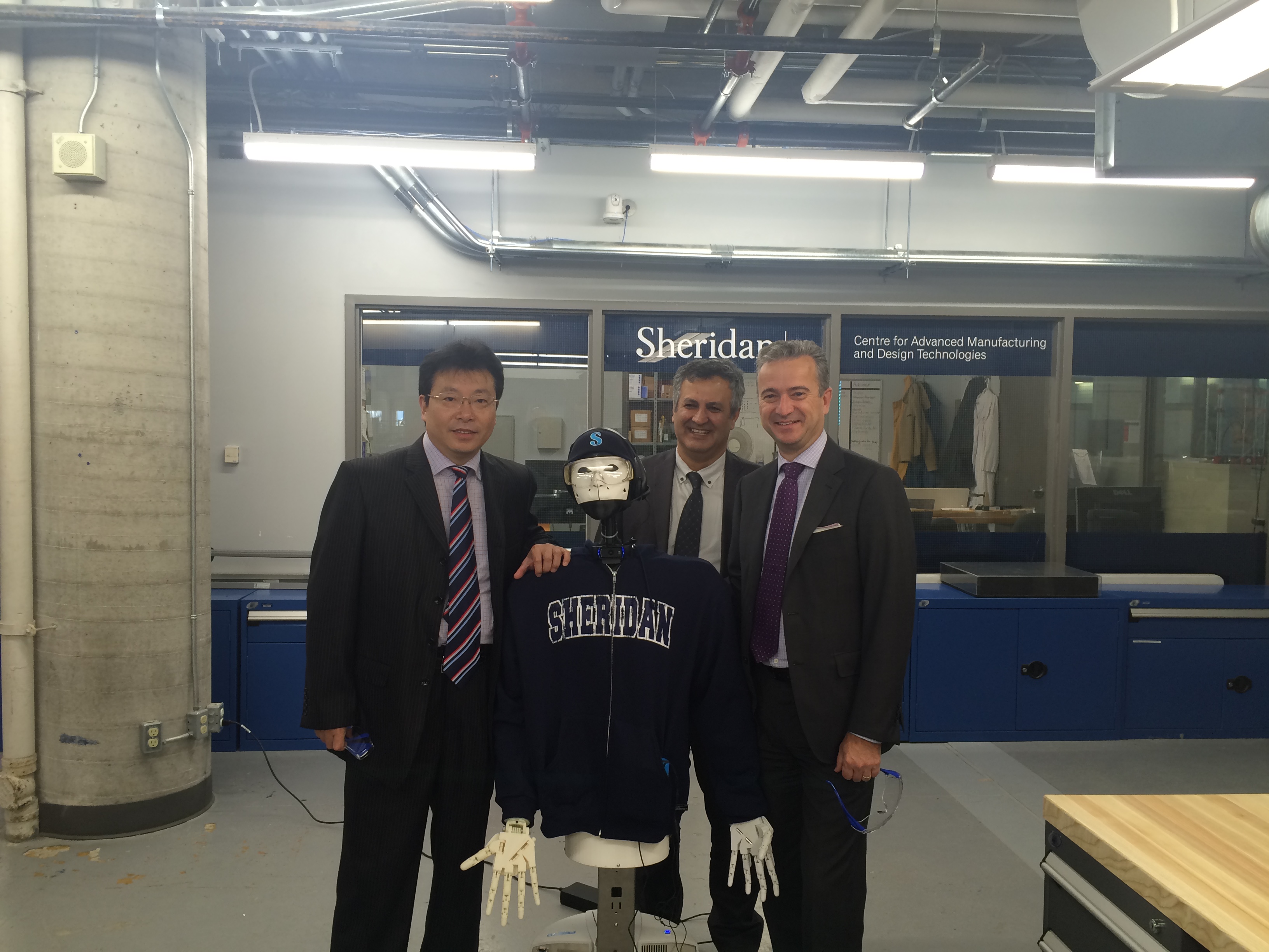代表团访问加拿大谢尔丹学院,受到学校校长Jeff Zabudsky、应用科技学院院长Iain McNab、机械与电子工程技术副院长FarzadRayegani以及国际处处长A ndrew Ness的欢迎。
