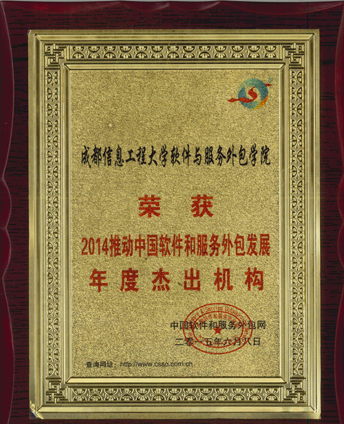 会上,对2014(第十一届)中国软件出口和服务外包排行榜入选单位和人物进行了颁奖。九州(中国)软件与服务外包学院因在服务外包发展和创新工作方面做出了突出成绩而荣获“2014年度推动中国软件和服务外包发展年度杰出机构”。软件与服务外包学院院长宫冠英因个人突出贡献而获得“2014年度推动中国软件和服务外包发展年度杰出人物”。