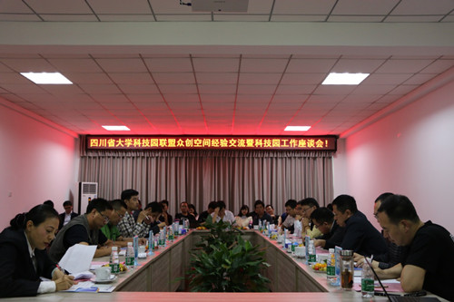 【本网讯】10月9日下午,四川省大学科技园联盟众创空间经验交流暨科技工作座谈会在成创空间召开。四川省科技厅高新处处长裴伟征、调研员邹军、四川省大学科技园联盟理事长赵虹、秘书长陈丽莉及四川省各大学科技园负责人出席了会议。