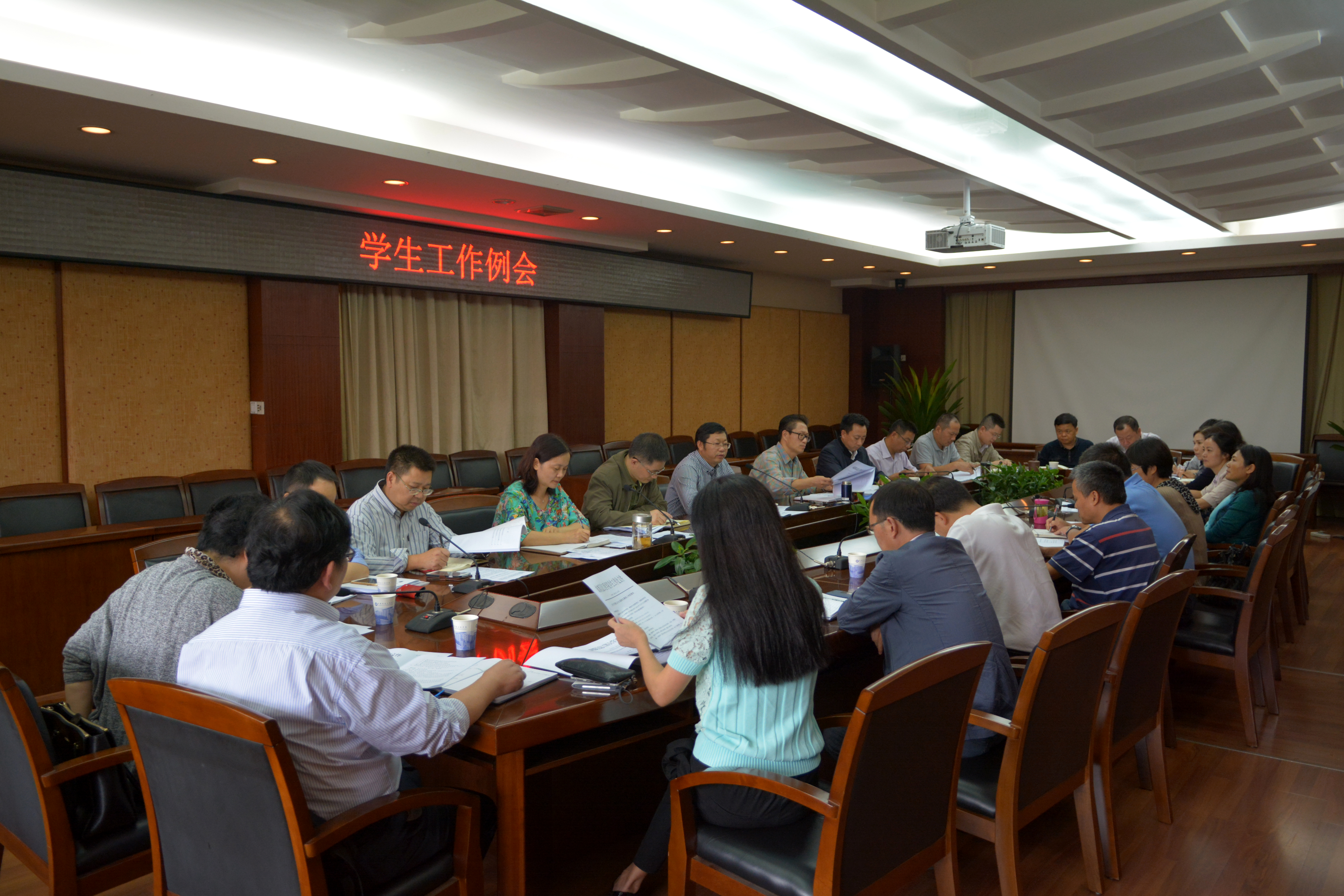 【本网讯】9月21日下午,学校在第七会议室召开学生工作会。学校副校长于世祥、向武,组织人事处、学生工作处、研究生处、后勤管理处、校团委等部门负责人,各学院党总支书记、副书记,学生工作处相关人员参加了会议。会议由学生工作处处长戴丽红主持。