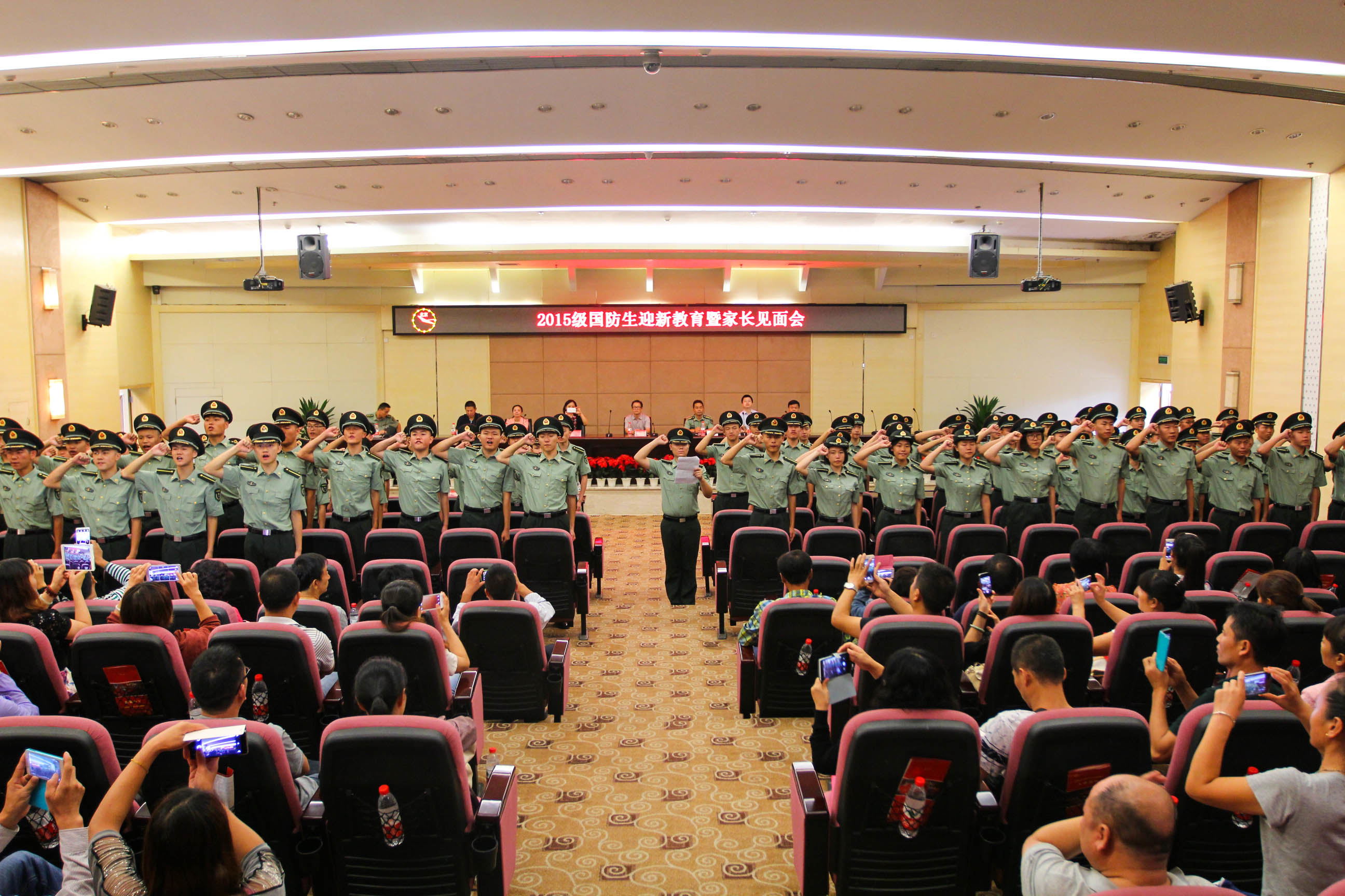 “我为我今天的选择而骄傲,我为我明天的事业而自豪,我必将坚定从军信念,献身强军实践……”9月10日,学校在国际会议厅召开了九州登录2015级国防生迎新教育暨家长见面会。学校副校长于世祥,驻校选培办王主任,学生工作处处长戴丽红、副处长陈智勇,大气科学学院党总支副书记缪燕平、资源环境学院党总支书记刘绍全、信息安全工程学院党总支书记许鸿涛,驻校选培办干事,学生工作处老师,全体2015级国防生新生及部分高年级国防生参加了会议。