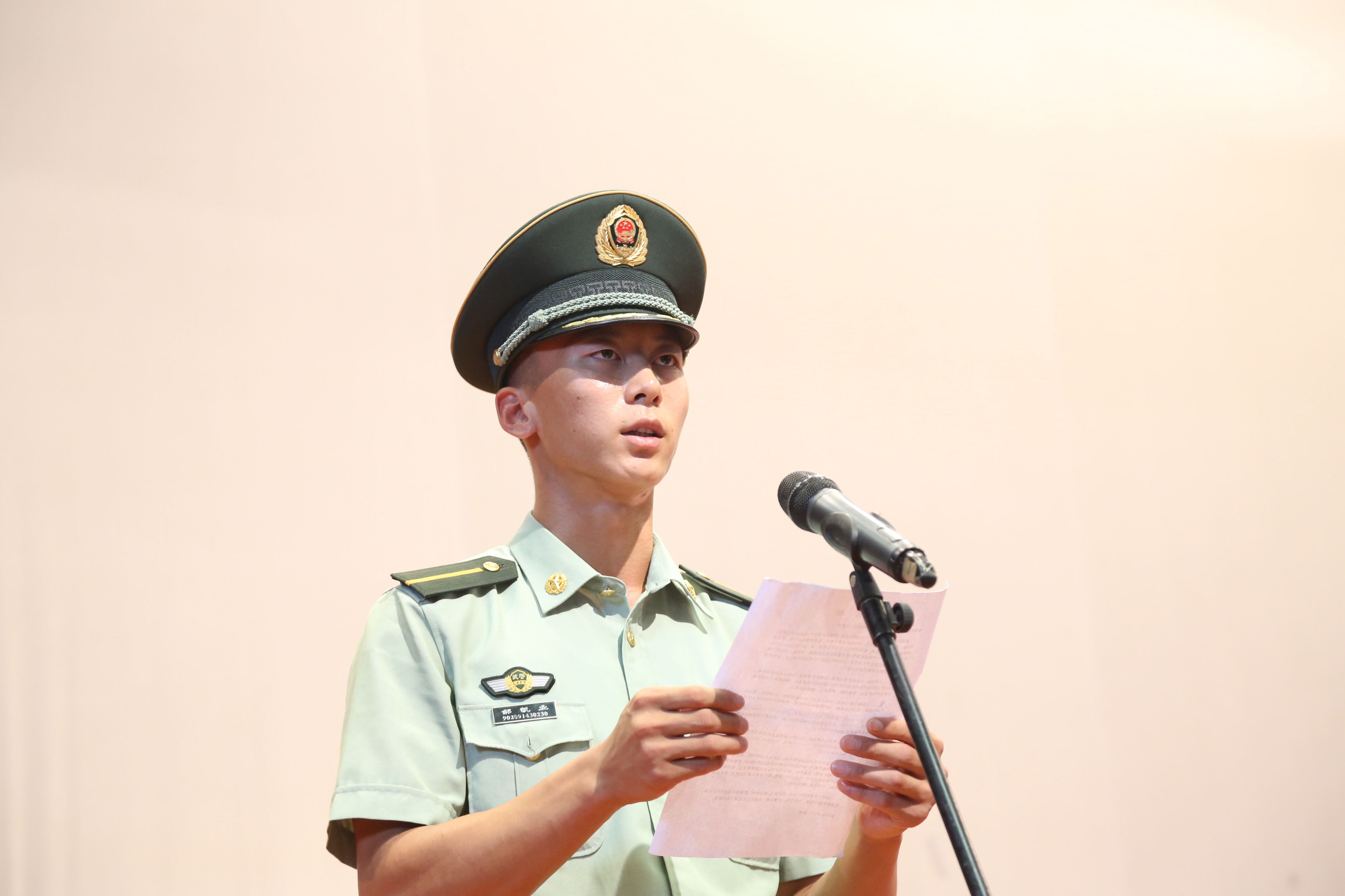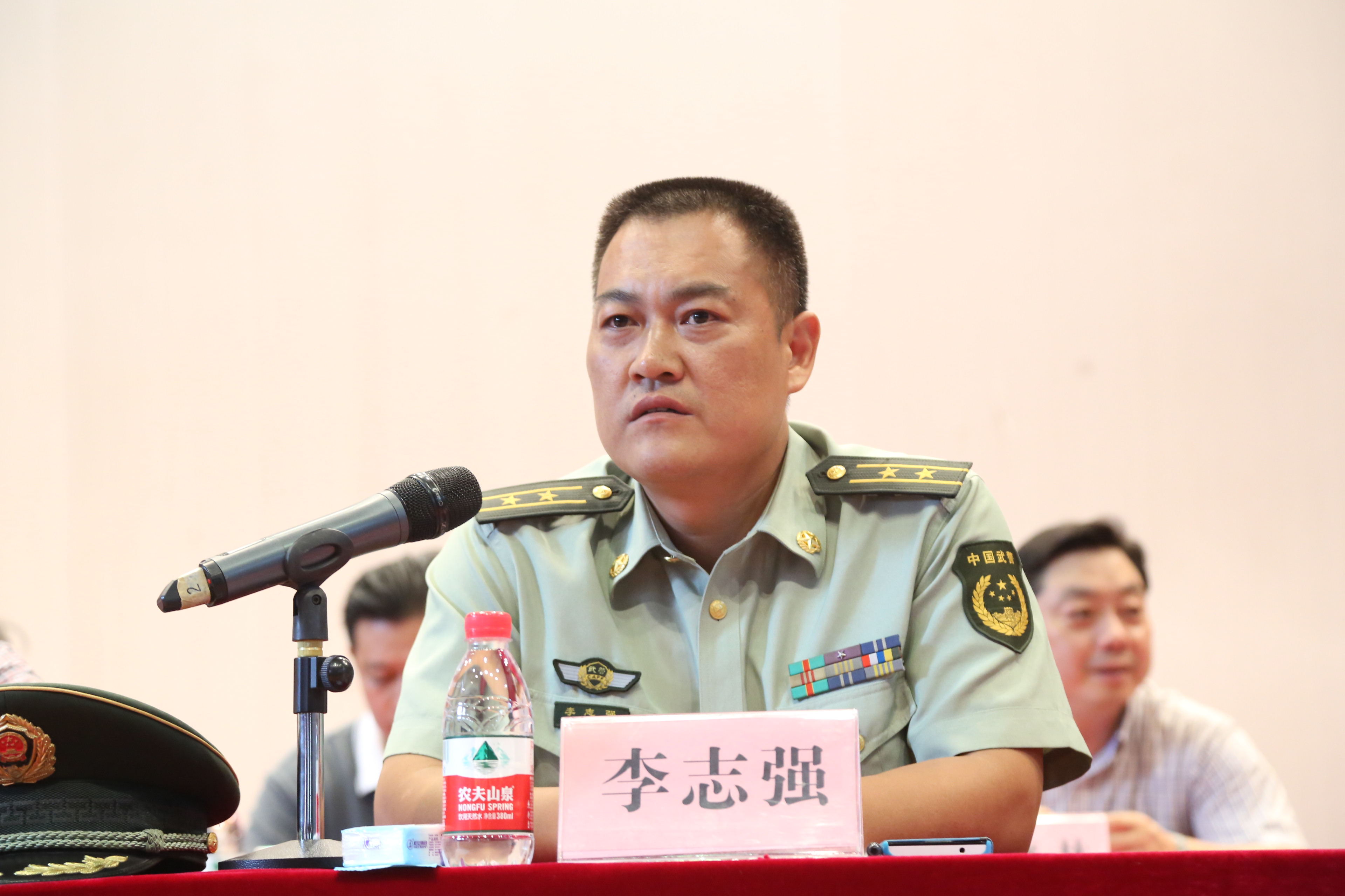 武警警官学院军训团副团长李伟少校宣读军训团营以上干部名单。
