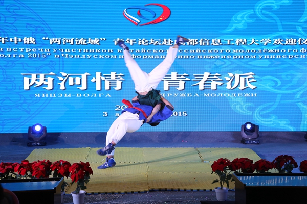 来自巴什科尔托斯坦共和国同学的现场摔跤表演,看的观众们热血沸腾。川剧传统节目变脸和吐火表演精彩绝伦,赢得了现场的阵阵欢呼。