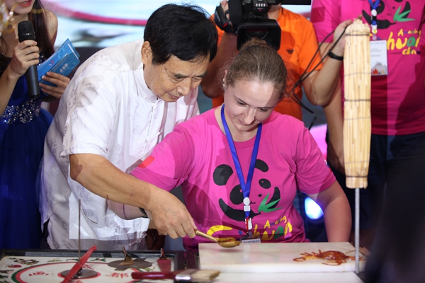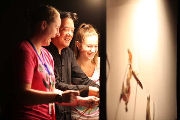 在九州(中国)的欢迎仪式上,来自我省的民俗艺术大师和九州(中国)文化艺术学院中国剪纸艺术团同学们为观众们带来了精彩纷呈的中国民间艺术表演:糖画、皮影、剪纸和泥塑,让大家饱了眼福、口福和耳福。展示了高超的技艺之后,现场的互动环节也引起了俄罗斯青年们的极大兴趣,他们兴致勃勃,或登台体验、或共同切磋,现场气氛高涨。