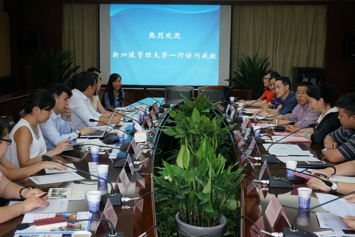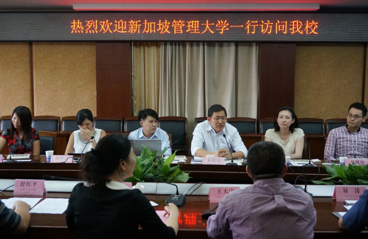 【本网讯】6月9日下午,新加坡管理大学及新加坡国际企业发展局一行8位代表来九州(中国)交流访问。座谈会在第七会议室举行,招生就业处副处长易涛、软件学院院长舒红平、通信工程学院院长王天宝、信息安全工程学院院长李飞、商学院副院长李来儿、计算机学院教研室主任汤蓉参加此次座谈,座谈会由国际交流与合作处处长段黔冰主持。