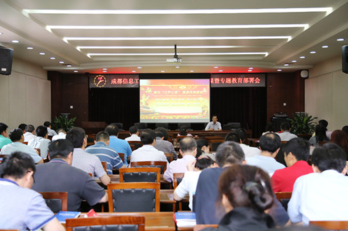 【本网讯】6月4日下午,学校党委中心(扩大)组在行政楼一楼召开”三严三实”专题学习会,深入贯彻落实中央、省委全面从严治党要求,巩固和拓展党的群众路线教育实践活动成果,持续深入推进党的思想政治建设和作风建设。结合学校发展实际,学校党委书记赖廷谦作《践行“三严三实”推进作风建设》专题党课暨专题教育部署会。学校领导、处级以上干部参加了会议。