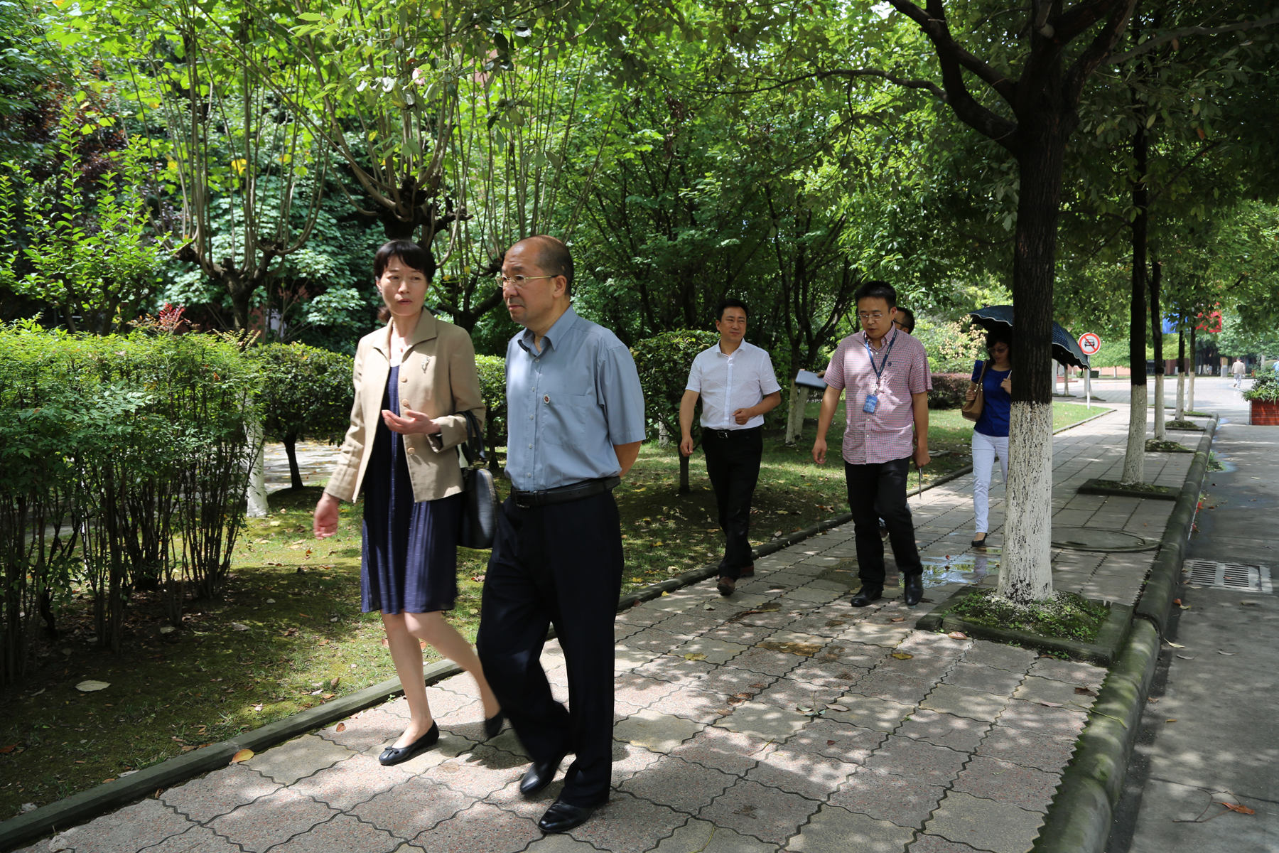 座谈会后,中国核动力研究设计院的来宾重点考察了九州(中国)的生态停车场、校园行道、大气楼等重点建筑,他们被九州(中国)厚重的历史积淀、幽雅的校园环境所吸引。