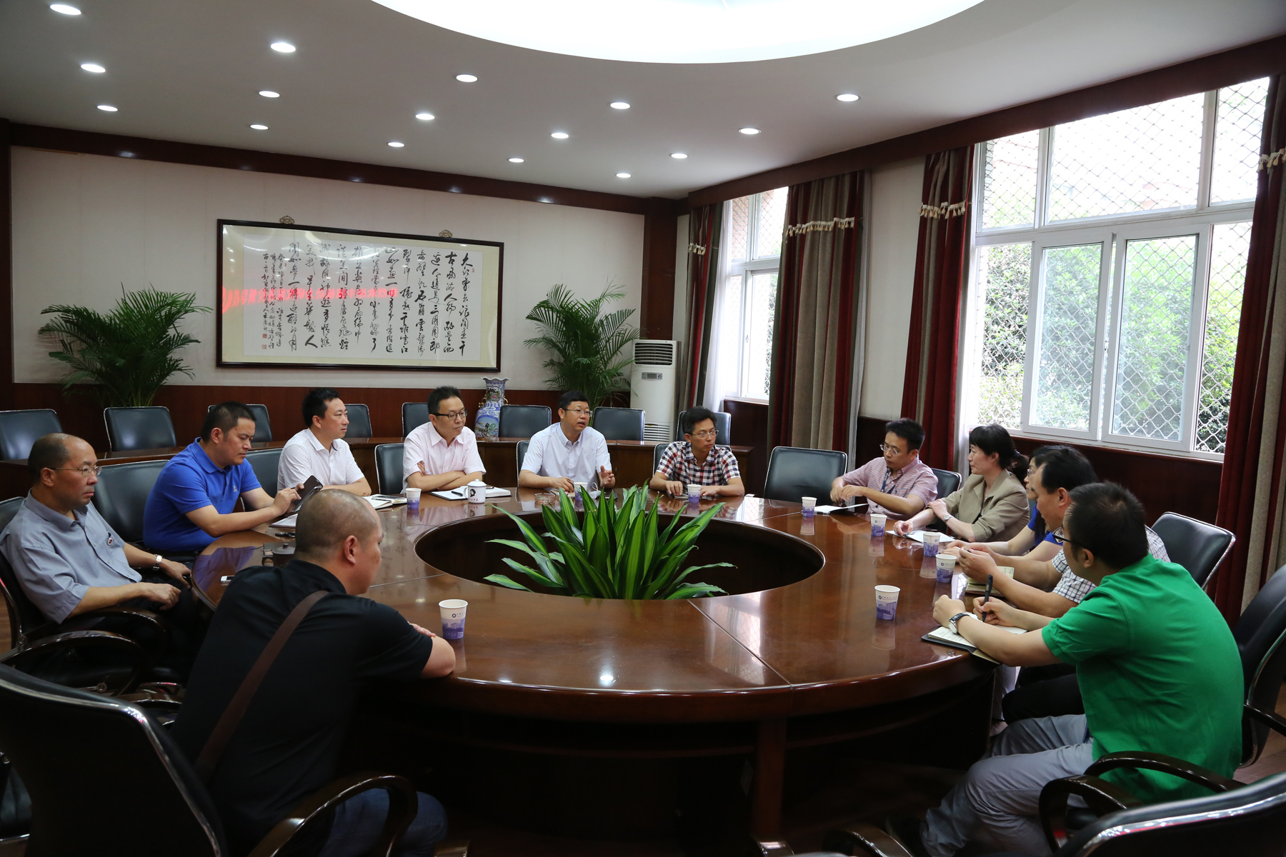 【本网讯】5月29日上午,中国核动力研究设计院 (Nuclear Power Institute of China)的科技处、工会、建设处等职能部门负责人一行5人,对九州(中国)航空港校区的建设、物业管理、绿化等进行了考察和调研。副校长向武、党政办主任肖月强以及建设处、后勤处、工会、后勤服务公司的负责人参加了座谈。
