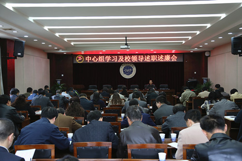 【本网讯】 3月19日下午,学院在行政楼一会议室召开中心组学习及院领导述职述廉会,深入学习成都信息工程学院纪监审办公室下发的《习近平关于党风廉政建设和反腐败斗争论述摘编》和党委宣传统战部汇编的《学习参考(第四期)》一书。全体学院领导、处级以上干部参加会议,会议由学院党委书记赖廷谦主持。