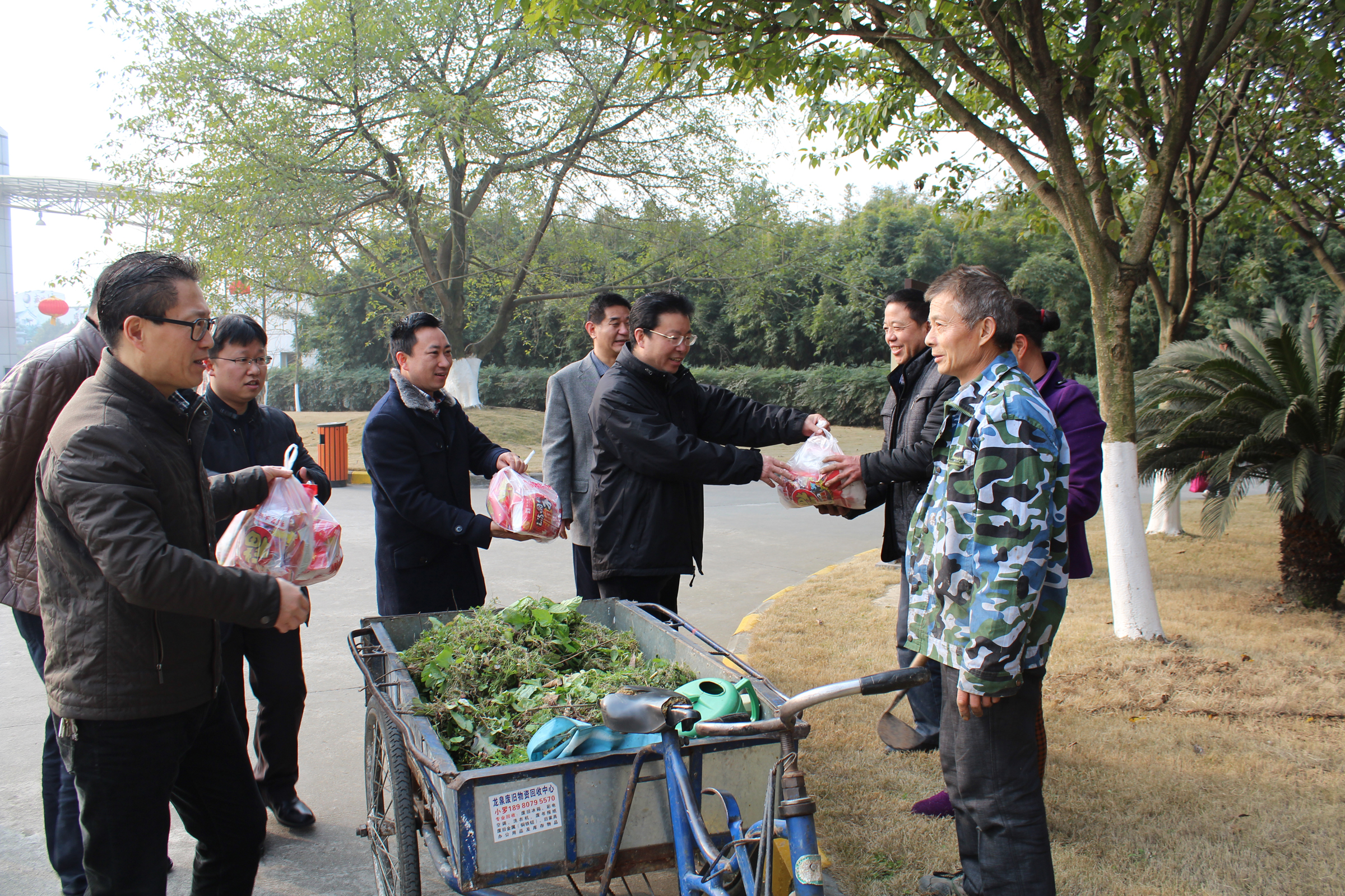 【本网讯】在2015年新春佳节来临之际,2月14日上午,赖廷谦、周激流、向武、于世祥等院领导在相关职能部门负责人的陪同下,对航空港、龙泉校区的后勤物业管理、学生宿舍、学生食堂、绿化养护工区等基层进行了走访慰问,为奋战在一线的干部职工送上节日问候和慰问品,更将浓浓的关爱和温暖,送到了全体职工的心坎里。院领导对在春节期间仍坚守在岗位上辛勤奉献的一线职工表示衷心的感谢,并致以诚挚的节日问候和美好祝愿。