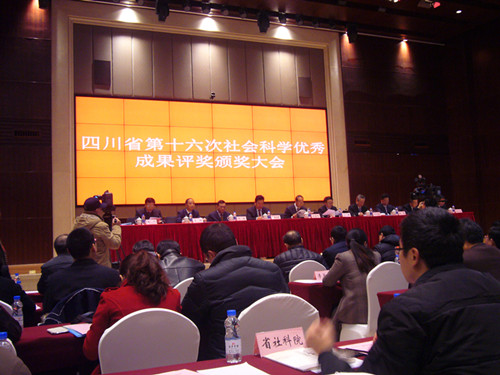 【本网讯】12月10日,四川省第十六次社会科学优秀成果评奖颁奖大会在蓉隆重召开。四川省委常委、宣传部长、省繁荣发展哲学社会科学领导小组组长吴靖平出席大会并作重要讲话。四川省人民政府副省长、省社科评奖委员会主任刘捷宣读了获奖名单,省社科联党组书记、副主席、省社科评奖委员会副主任赵英作了第十六次评奖工作报告。