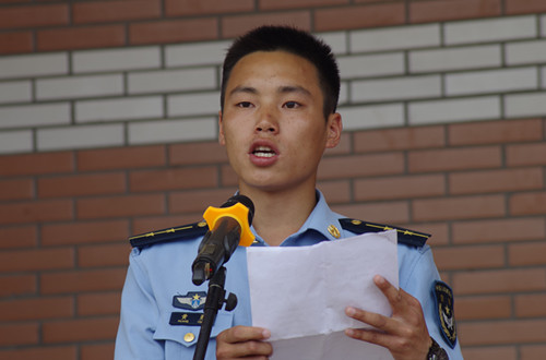 军训教官代表在发言中表示:全体教官要从我做起、以身作则,认真履行教官职责,以良好的军人形象和过硬的军事素质完成好此次军训任务,帮助同学们强健体魄、磨练意志,增强国防意识。