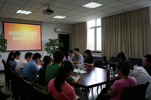 朱兴华汇报了学院的建设与发展基本情况,主要对学科专业、师资队伍、科研平台、研究团队做了简要介绍,分析了学院面临的不足与困难,并提出了发展的思路与需求。