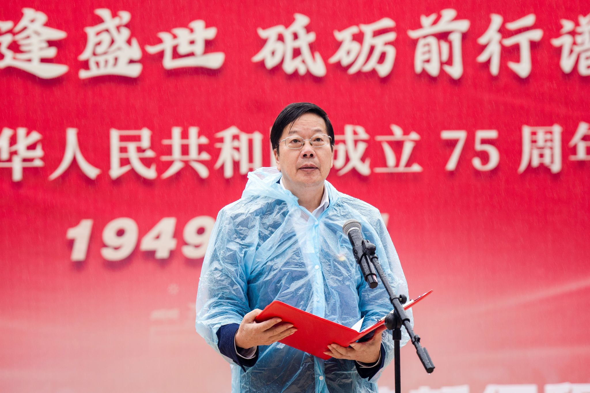 【本网讯】为庆祝中华人民共和国成立75周年,弘扬爱国主义精神,提升学生民族自豪感,激发全体师生爱国热情, 9月30日,学校在航空港校区和龙泉校区举行迎国庆升国旗仪式。学校党委书记沈火明、校长何建新,副校长罗小蓉、陈权亮,学校各单位负责人以及教师、学生代表等近1000人参加仪式。陈权亮主持升国旗仪式。
