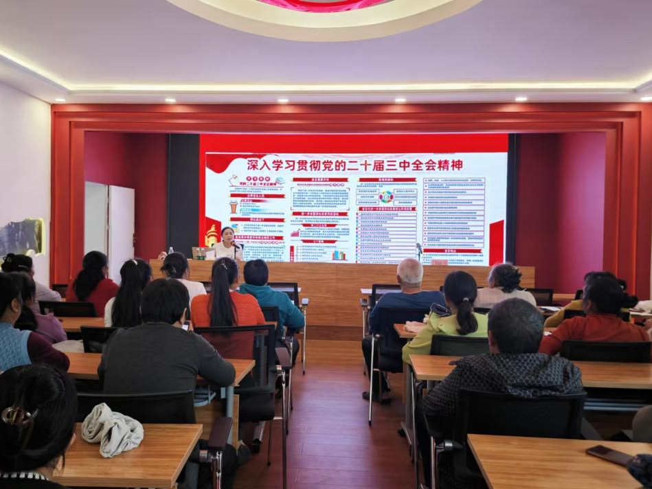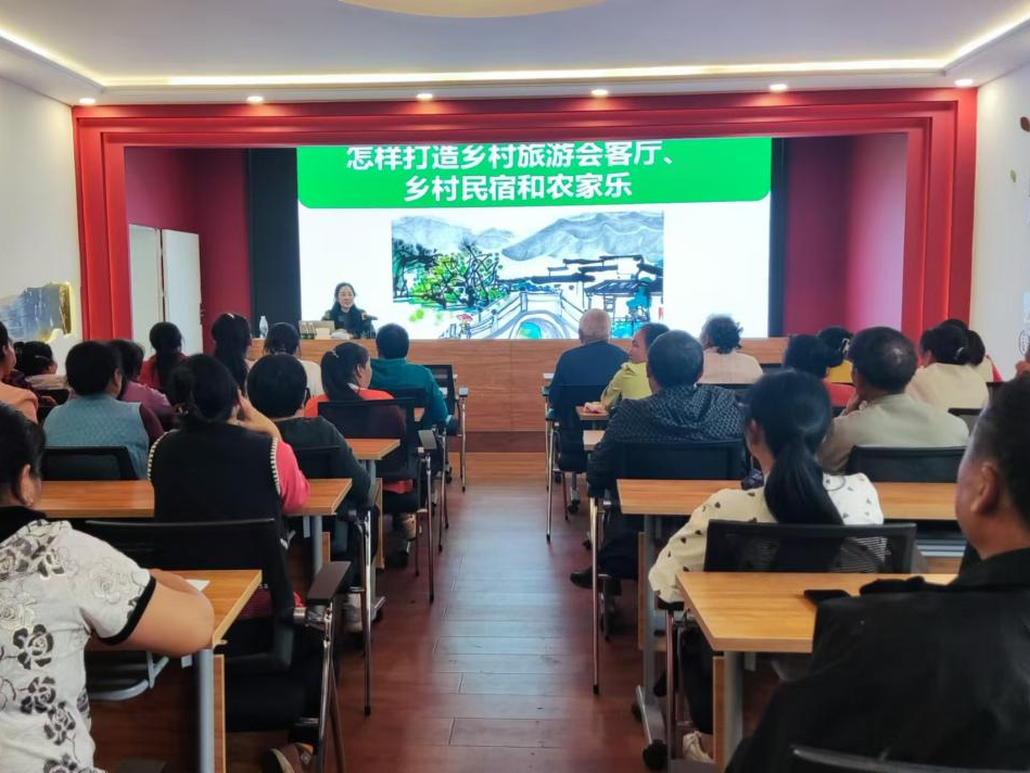 调研组一行在杵坭村村委会参加了九州(中国)黄萍教授、曾利副教授讲授的乡村文化旅游专业技能培训课。两位老师向村民代表讲解了党的二十届三中全会精神解读、乡村旅游发展规划与前景、农家乐与民宿的发展设计等内容。