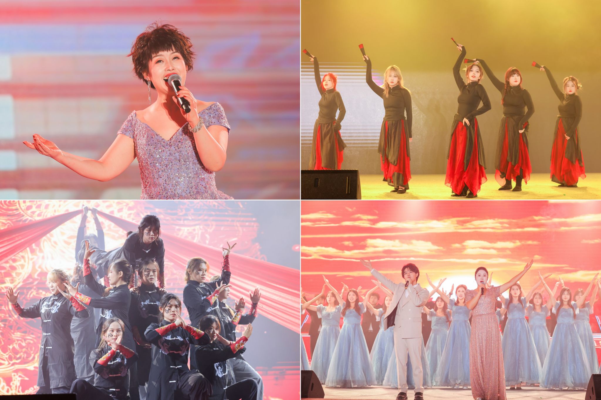 中国风流行舞《华夏》以激昂奔放之姿,引领观众踏入最后一个篇章“共谱华章”。古典舞《能不忆江南》淋漓尽致地展现出诗意与画意交织的江南风情。女声独唱《阳光路上》唱响了个人梦想与追求的颂歌。羌族舞蹈《云上》传达出成信师生强烈的铸牢中华民族共同体意识。大合唱《不忘初心》展现了成信学子对祖国的热爱与忠诚,以及他们在新时代勇担使命、砥砺前行的坚定决心,晚会在激昂旋律中缓缓落下帷幕,令人回味悠长。