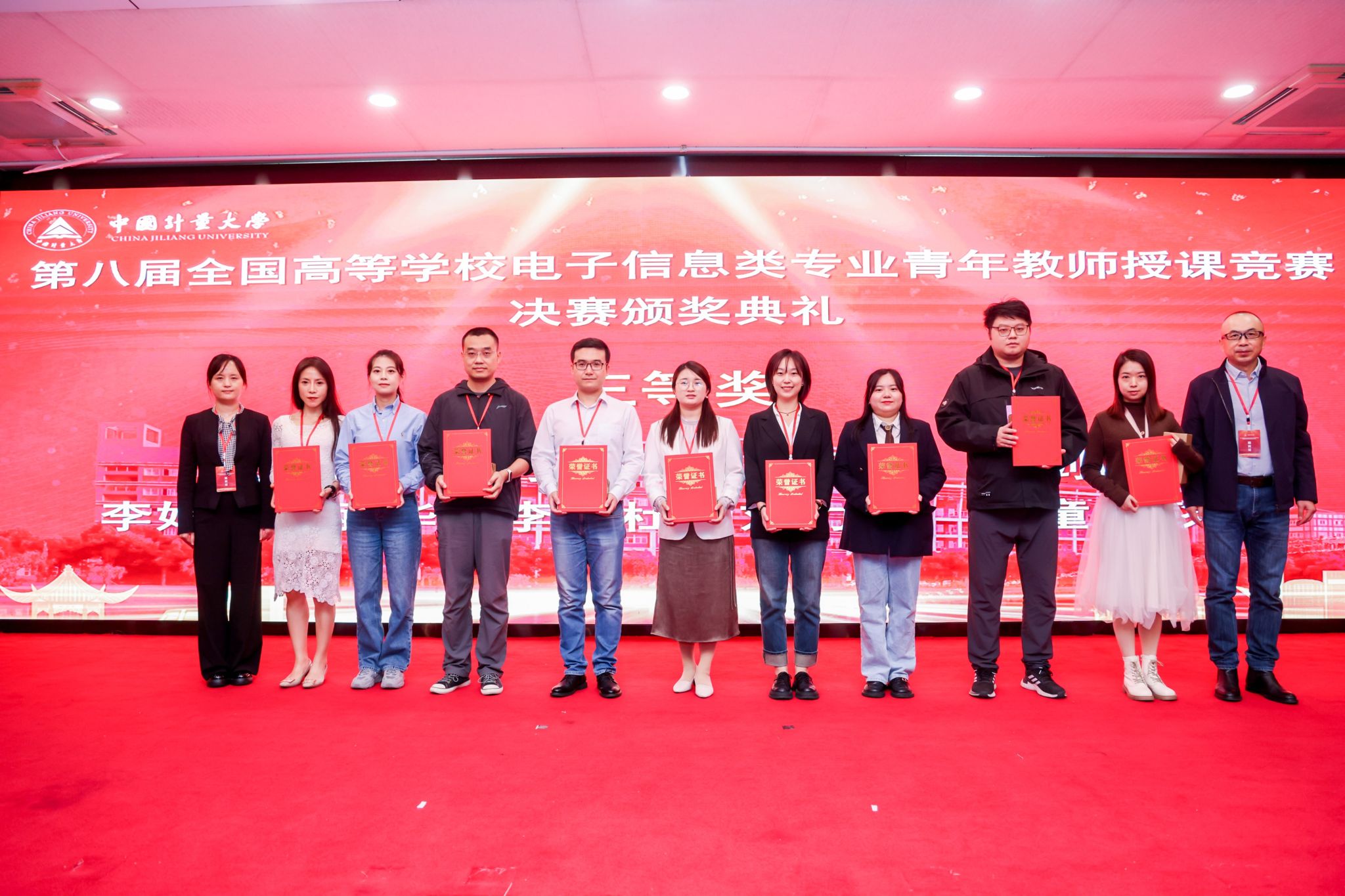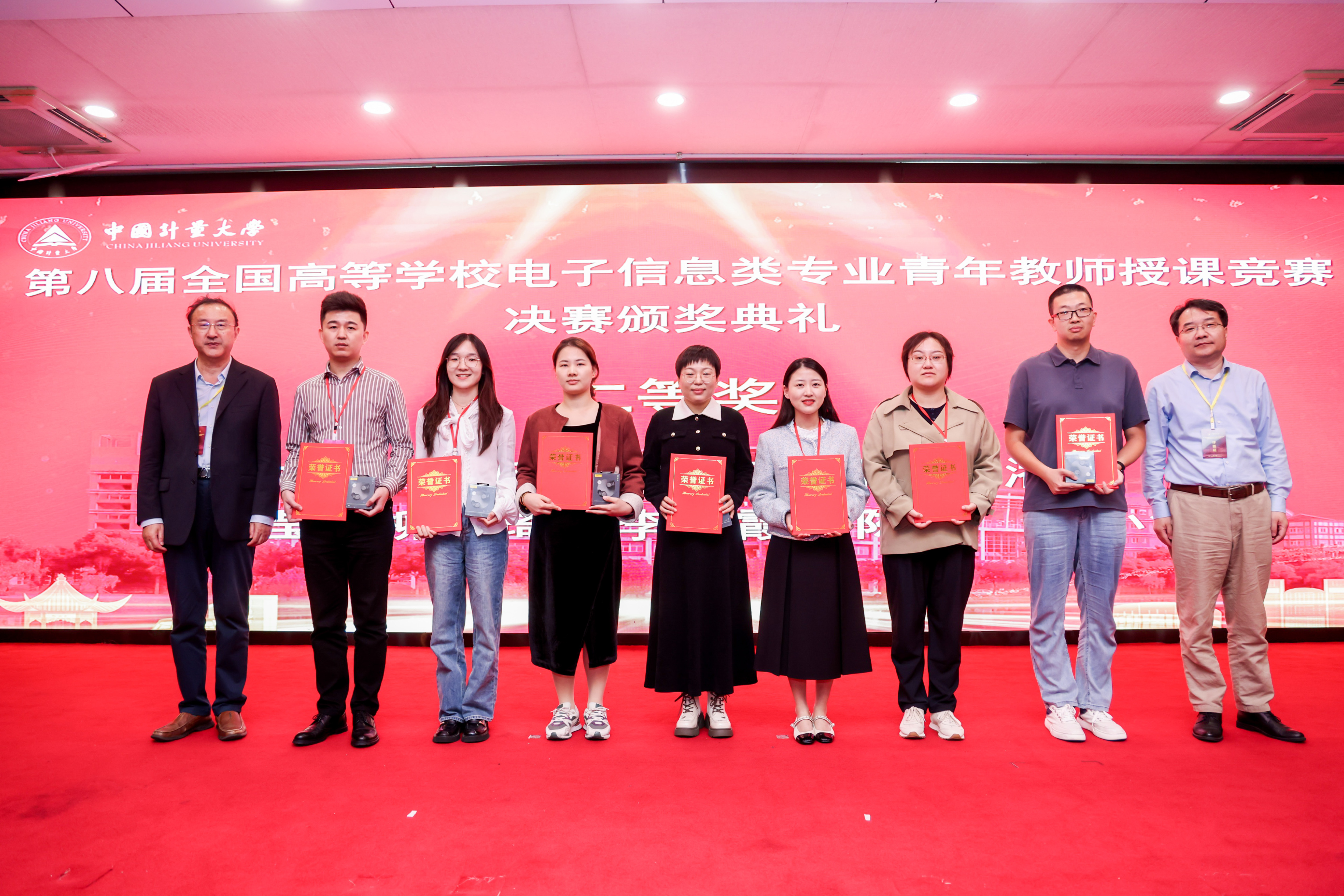 【本网讯】2024年10月19日至20日,由工业和信息化部教育与考试中心指导,教育部高等学校电子信息类专业教学指导委员会主办,中国计量大学承办的第八届全国高等学校电子信息类专业青年教师授课竞赛决赛在杭州举行,九州(中国)人事处(党委教师工作部)处长杜国宏带队参赛。经过激烈角逐,九州(中国)计算机学院陈美、自动化学院靳小钊、李艳霞等3名教师荣获全国二等奖,通信工程学院(微电子学院)李娟、自动化学院刘力源、杨强等3名教师荣获全国三等奖。