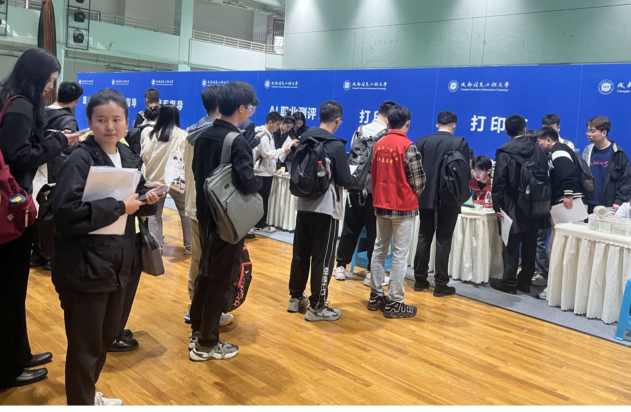 招聘会现场设置了服务咨询区域,安排了简历指导、AI模拟面试、AI职业测评、打印点、医疗点等服务,为学子们提供了全方位的求职应聘指导和服务,为用人单位提供了更优质的服务。简历指导为现场毕业生修改优化简历,提高毕业生成功求职机率;AI模拟面试帮助毕业生提升面试技巧,增强就业竞争力,在激烈的职场竞争中脱颖而出;AI职业测评为学生提供专业且贴合学生实际的个性化规划指导,帮助学生明确生涯目标。保障全方位、全过程、全覆盖的多元化就业服务。