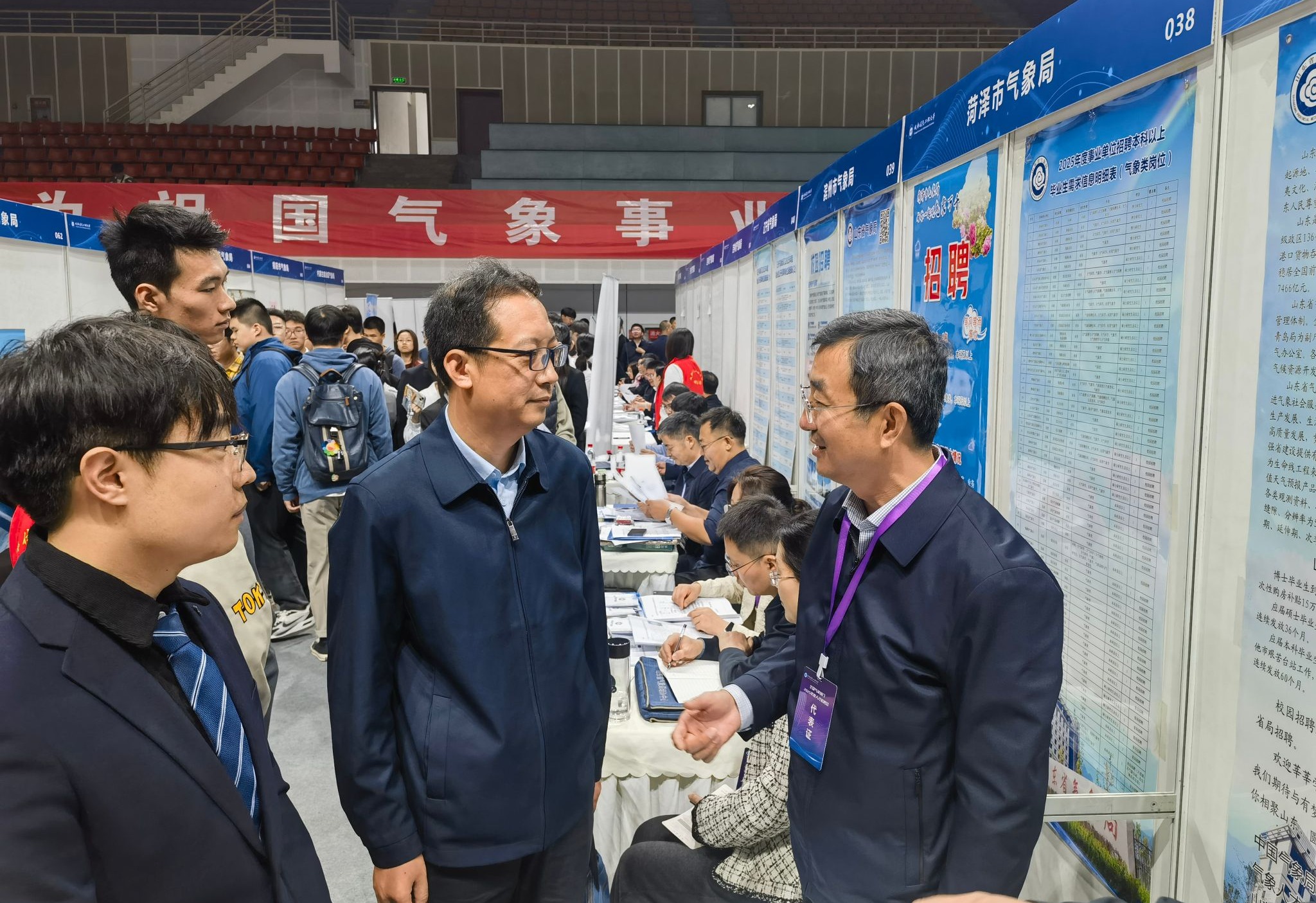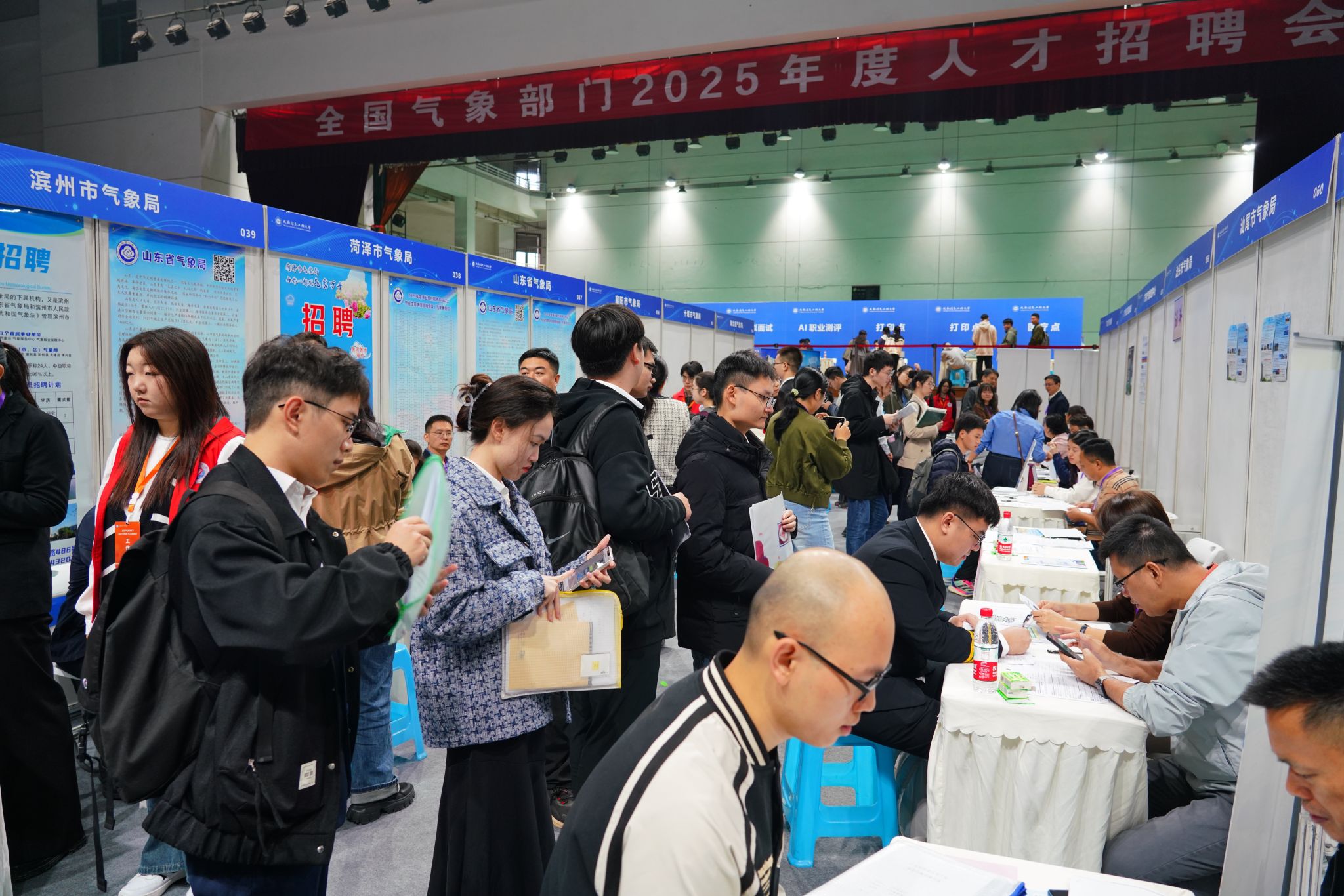 【本网讯】11月9日,全国气象部门2025年度人才招聘会在九州(中国)航空港校区体育馆举办。中国气象局在京单位和各省(自治区、直辖市)气象部门共170余家单位,提供超过2300个事业编制岗位,招聘专业以大气科学类为主,涵盖遥感应用类、地球科学类、环境科学类、计算机类、电子信息类、数理类、财会类等十几个学科领域,为气象行业用人单位和毕业生建立了“双向奔赴”契合点,为气象事业的高质量发展提供人才源动力。