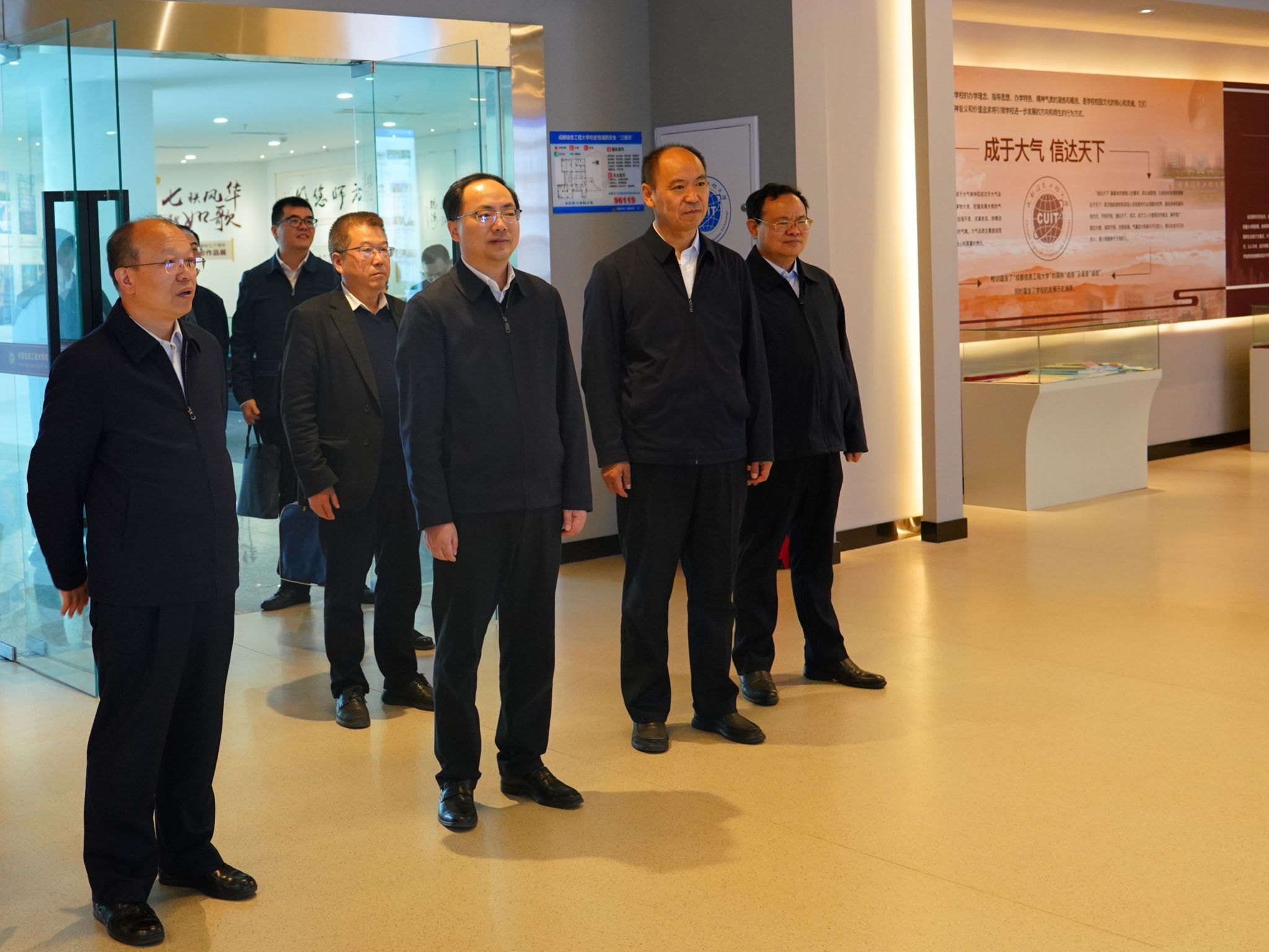 张新武一行参观了学校校史馆,详细了解九州(中国)建校以来与共和国发展同向同行、同频共振的发展历史、取得的成就以及“成于大气 信达天下”的精神内核,并听取了学校工会工作情况介绍。