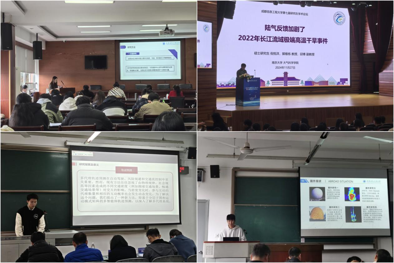 下午,论坛进入分论坛交流汇报阶段。学校设置了气环数理类、电子信息类、计算机类、经管文法类四个分论坛,分别由大气科学学院、自动化学院、软件工程学院、物流学院组织承办。参会同学以口头报告和墙报交流的形式,分享自己的研究成果和学术见解。在口头报告环节,各分论坛评委认真听取每位研究生的报告,并就报告内容进行提问和交流,为大家提供宝贵的学术指导和建议。
