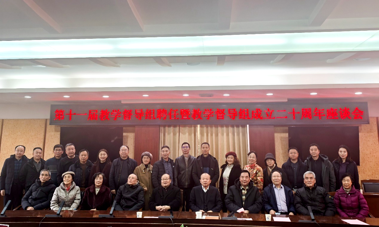 【本网讯】1月15日上午,学校第十一届教学督导组聘任暨教学督导组成立二十周年座谈会在行政楼第七会议室召开。学校校长何建新,党政办公室、党委教师工作部、党委学生工作部、教务处、研究生院、校工会、教学评估中心负责人,学校往届教学督导代表、现任教学督导组成员及教学评估中心相关工作人员参加会议。会议由教学评估中心主任吴四九主持。