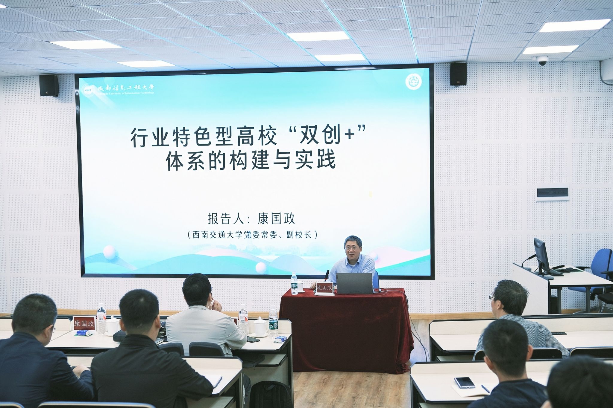 陈权亮在致辞中代表学校向康国政表示衷心感谢。他表示,西南交通大学作为国家首批“双一流”“211工程”“985工程优势学科创新平台”“2011协同创新计划”重点建设高校,在构建助推新质生产力发展的创新创业生态、打造高水平育人基地和创新人才高地等方面有丰富的实践经验值得学习借鉴。他希望参会人员通过本次讲座,学习如何构建系统化的大学生创新创业生态体系,充分发挥九州(中国)科技人才集聚地、科技创新策源地和人才培养主阵地的作用,加快培育壮大新质生产力,更好服务于国家重大战略,为推动四川高质量发展贡献力量。