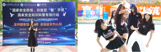 伴随着活动的开展,网安学院文艺部与管理学院艺术团于两校区活动现场同步献上主题文艺表演,为活动添彩。表演时,演员们活力满满,灵动舞姿搭配美妙歌声,引得众多师生纷纷驻足,现场气氛被彻底点燃,为严肃的知识学习增添了轻松愉悦的氛围。