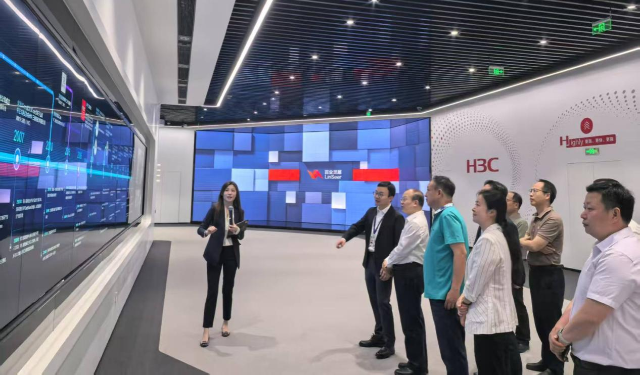 4月19日,何建新一行到访新华三集团杭州总部,在新华三集团高级副总裁、首席信息官谌平的陪同下,参观了企业展厅,详细了解新华三在数字经济、人工智能、5G通信、智能运维等领域的创新成果及行业应用。作为数字化解决方案的领军企业,新华三集团展示了其在智慧城市、工业互联网等领域的标杆项目,双方就前沿技术发展与高校学科建设适配性展开深入探讨。