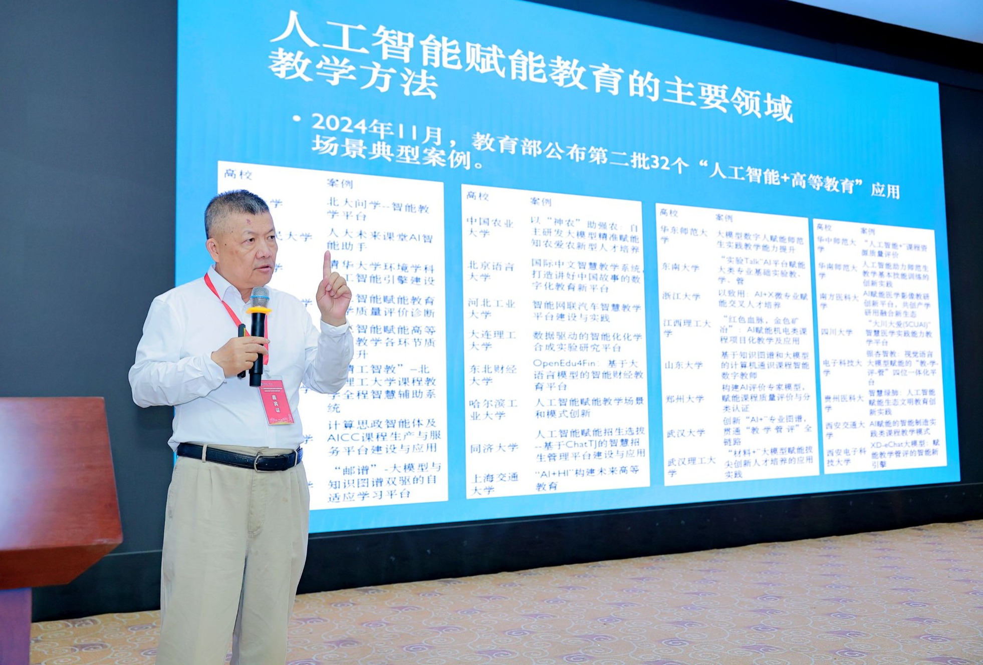 贺盛瑜代表四川省电商教指委致辞。她指出,人工智能正在引发第三次教育革命,教育正在经历跨国、跨校、跨界、虚拟与现实结合、线上线下结合的重大变革。四川教育在全国教育版图中处于重要而特殊的地位,需要对人工智能与教育的深层次互动加深了解,明确“办什么样的教育”“教育的本质”是什么、如何办好“本质的教育”。