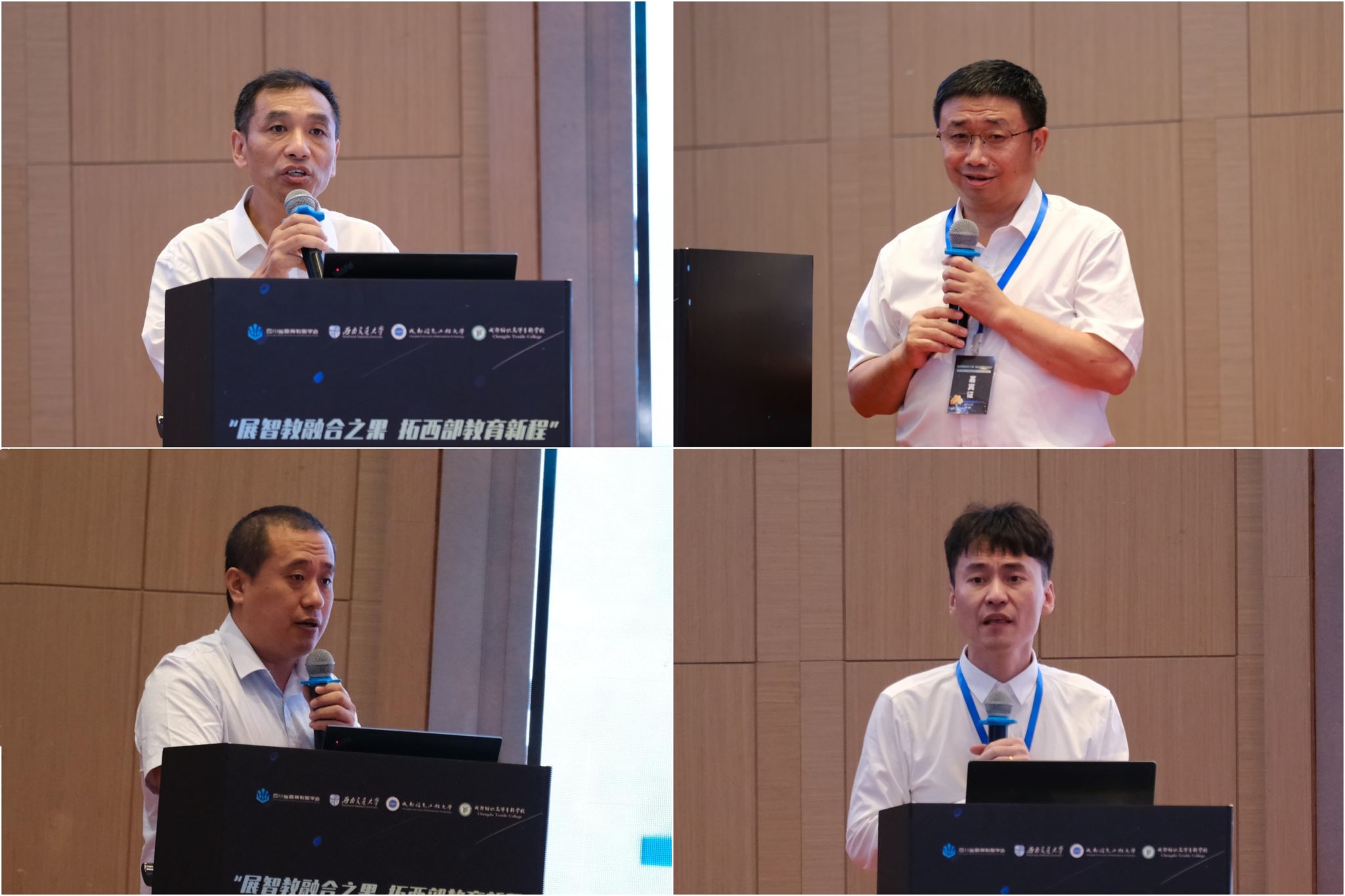 西南交通大学本科生院副院长吕宝雨、成都纺织高等专科学校校长孙锐、成都工业学院校长刘保县、智慧树网知识图谱事业部总经理钱海,分别围绕“多模态智能应用矩阵:西南交通大学AI赋能教育教学创新改革实践”“产学研深度融合,构建创新型高技能人才培养模式”“应用型工科教师数字素养提升的AI革命—以’产教智能体’打通人才培养最后一公里”与“高等教育优势专业的创新实践”等主题作了专题报告。