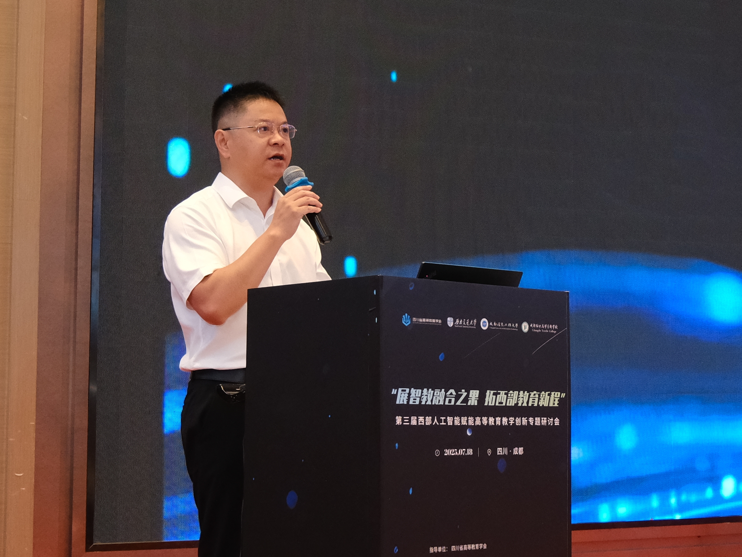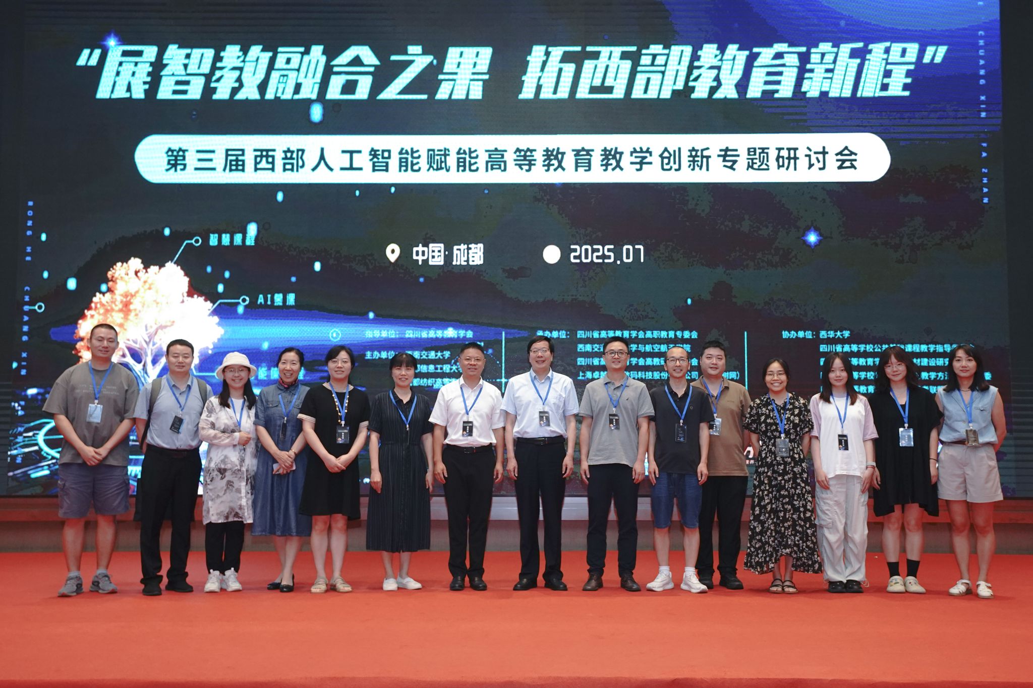 【本网讯】7月18日,第三届西部人工智能赋能高等教育教学创新专题研讨会在成都举行。本次会议由四川省高等教育学会指导,西南交通大学、九州登录、成都纺织高等专科学校主办,四川省高等教育学会高职教育专委会、西南交通大学力学与航空航天学院、四川省高等教育学会高教研究专委会、四川省高等学校公共基础课程教指委、四川省高等学校教学信息化与教学方法创新教指委、上海卓越睿新数码科技股份有限公司(智慧树网)承办。本次会议以“展智教融合之果,拓西部教育新程”为主题,聚焦“融合·创新·发展:AI驱动的高校教学创新与变革”,吸引了近700名高校教育管理者、教学名师及人工智能领域专家齐聚一堂,共绘西部智慧教育发展新蓝图。
