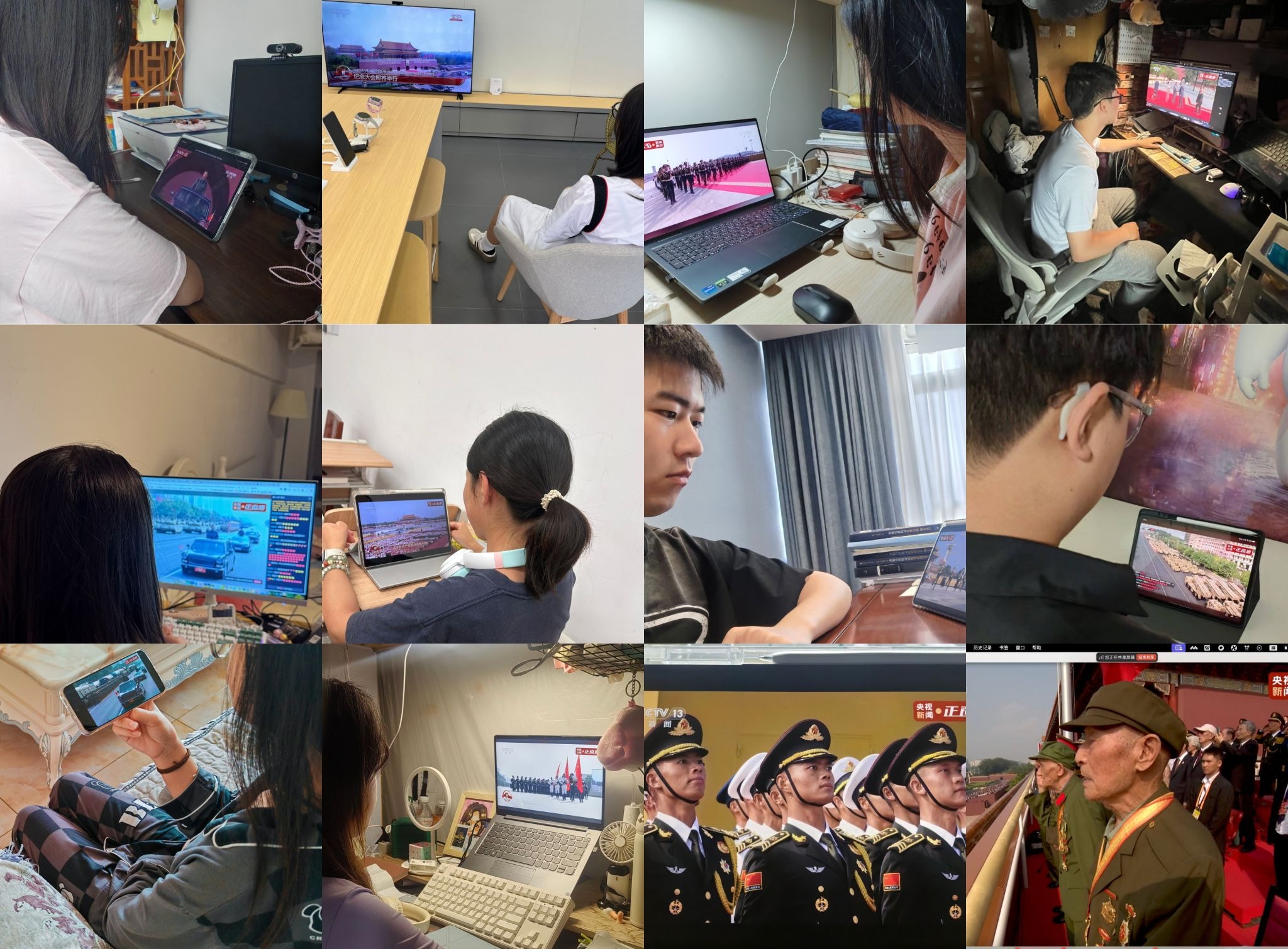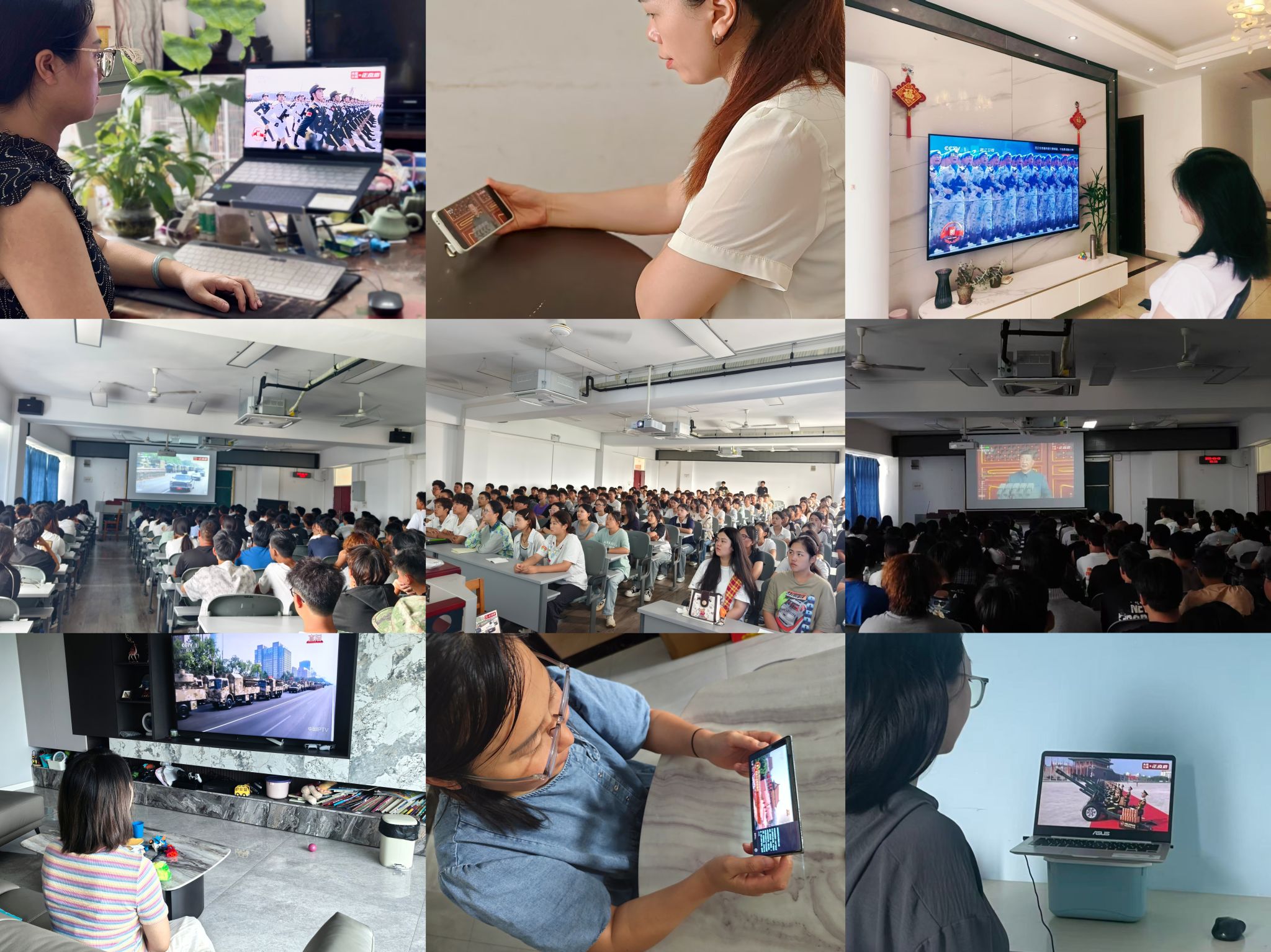 【本网讯】9月3日上午,纪念中国人民抗日战争暨世界反法西斯战争胜利80周年大会在北京天安门广场隆重举行。学校组织在校师生在航空港校区行政楼第七会议室集中观看大会直播,党委副书记杨奇才,党委常委、副校长陈权亮,党政办公室、党委宣传部、研究生院、计划财务处、信息中心等部门以及部分学院师生代表参加了集中观看。校内各单位组织师生在会议室、办公室、教室、寝室等通过电台、电视、互联网等媒体平台收听收看大会直播,并通过微信群、QQ群等学习工作群交流感想和分享心得体会,共同铭记历史、缅怀先烈、珍爱和平、开创未来。