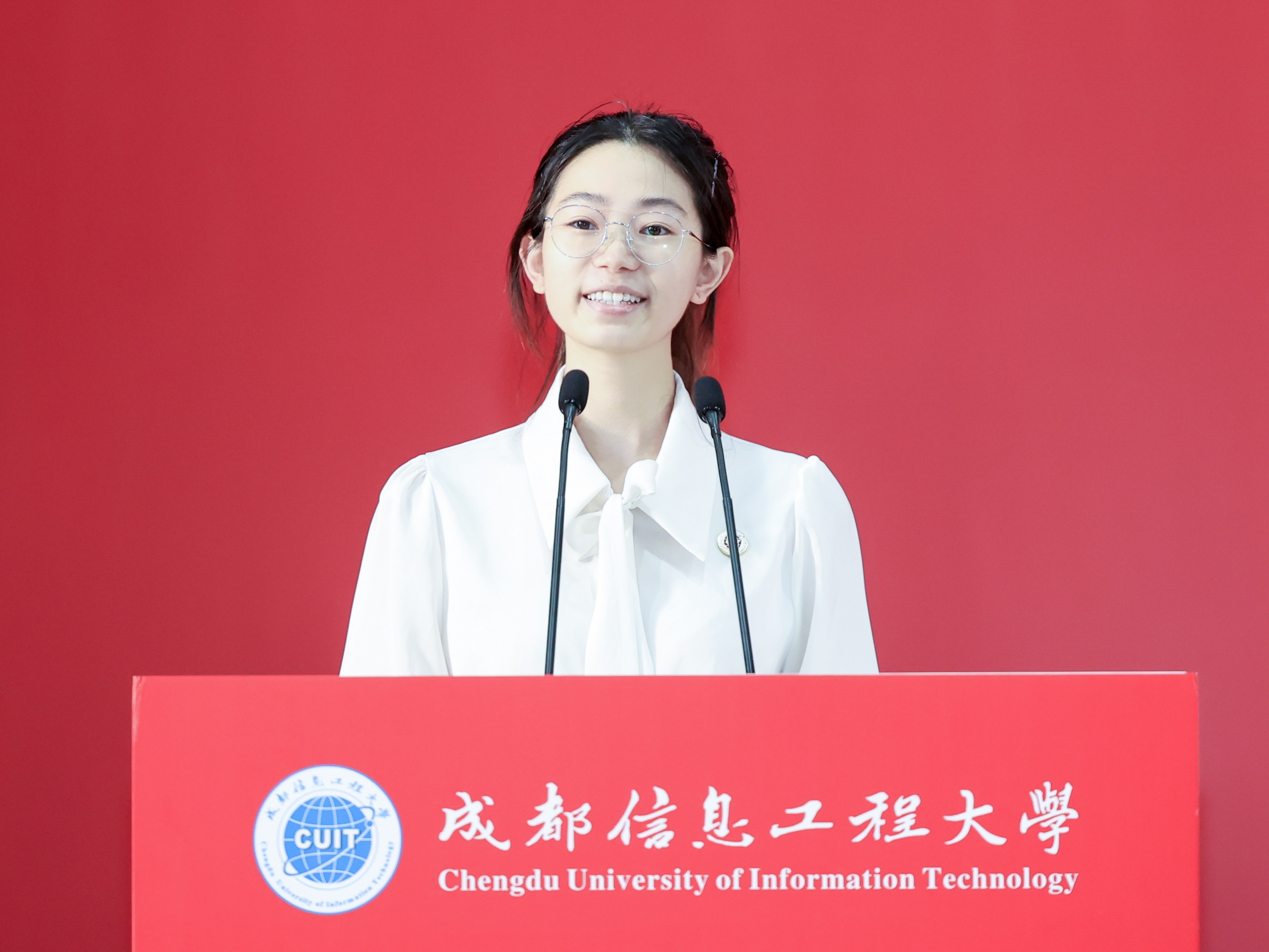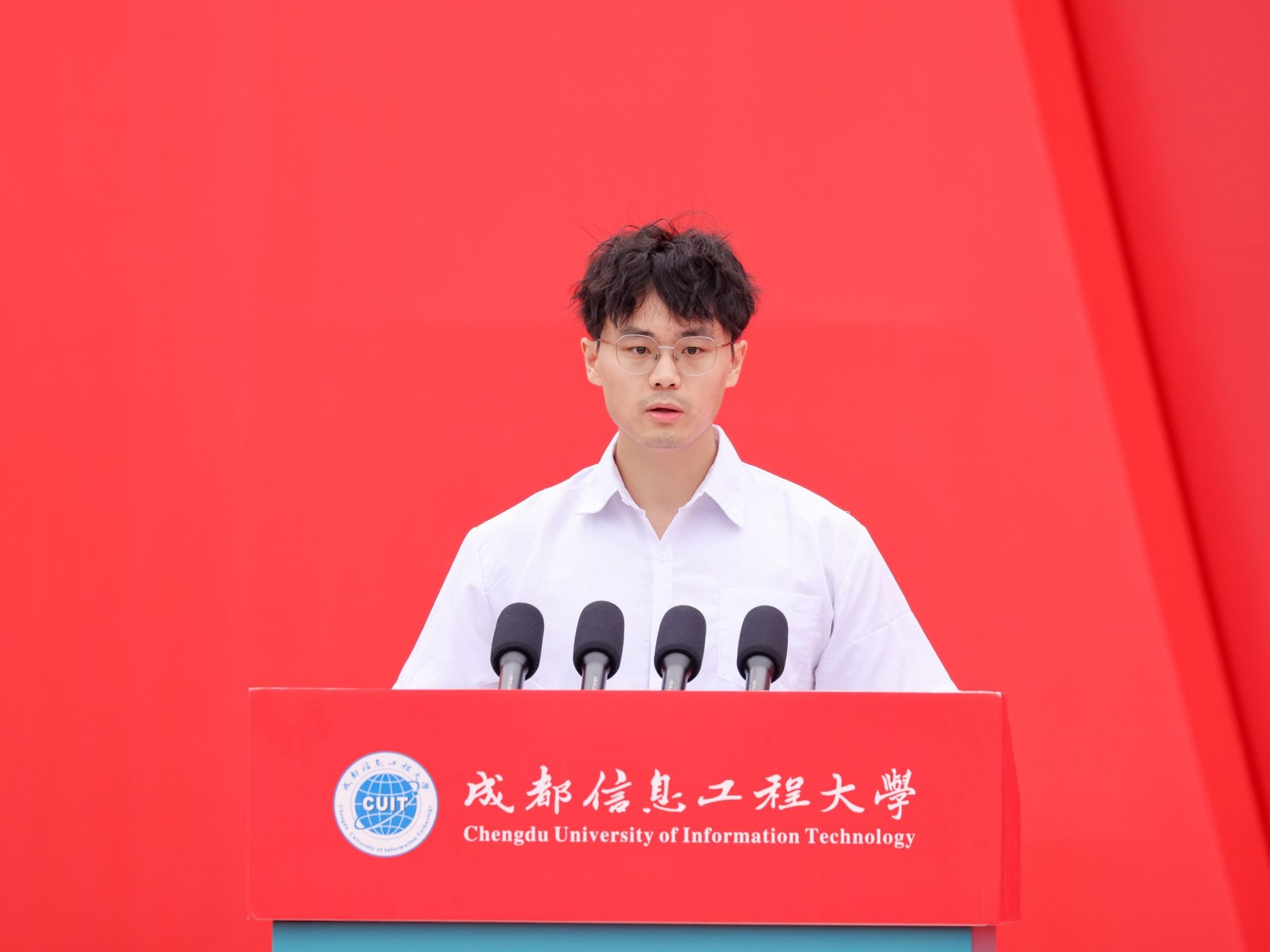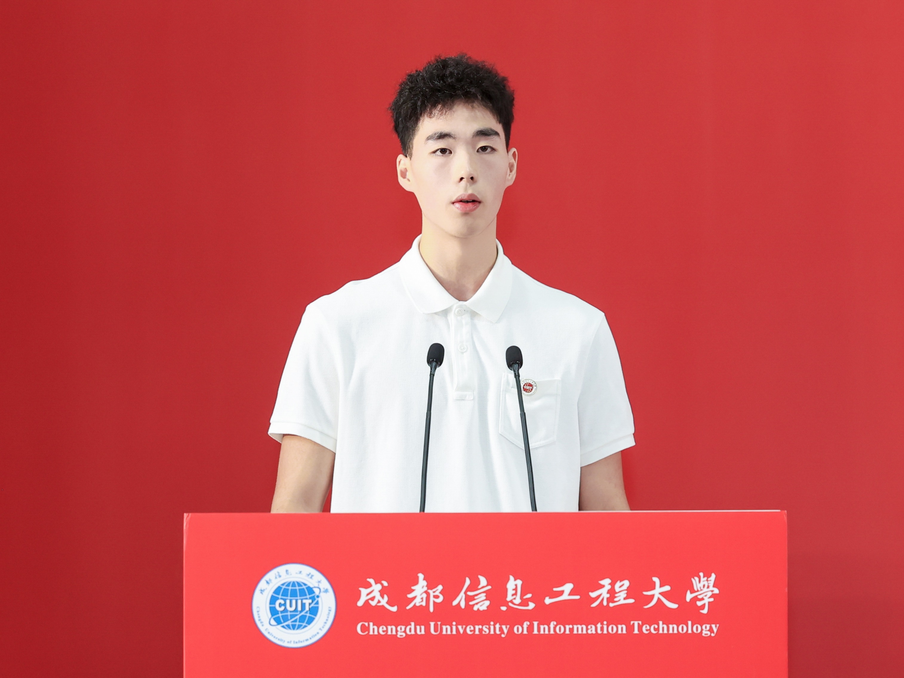 本科新生代表、管理学院魏子越同学分享了与成信大特殊的“缘分”,母子同校求学的历程令他倍感荣幸。他号召全体新生牢记“强国有我”的信念,传承成信精神,用青春谱写不愧于时代的华章。
