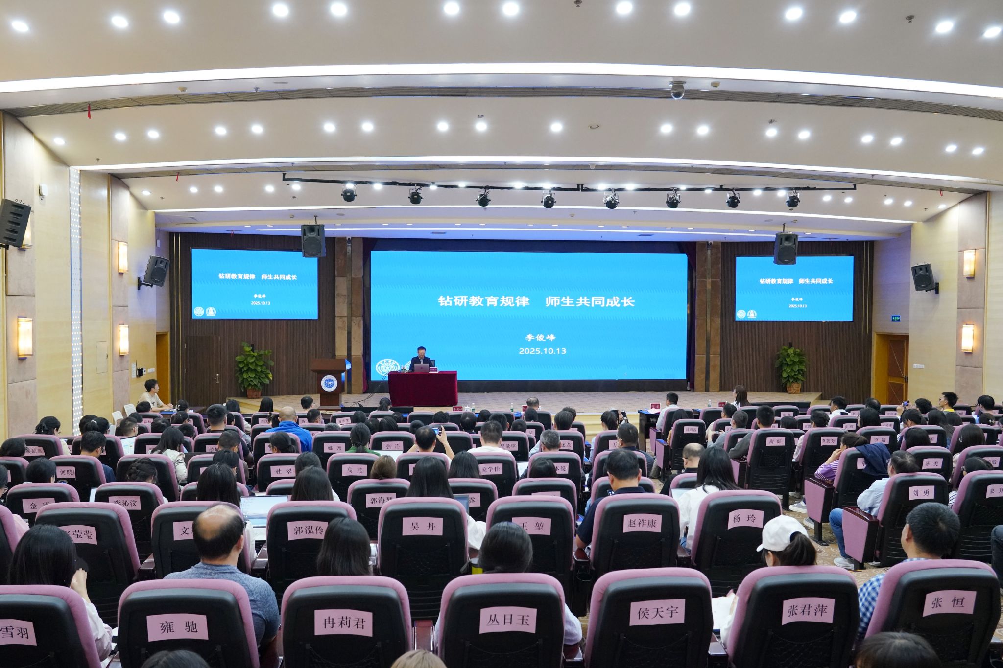 何建新在致辞中代表学校向李俊峰教授表示热烈欢迎。他表示,青年教师作为学校教师队伍的重要组成部分,是推动学校教育事业高质量发展的中坚力量。青年教师兼具蓬勃的创新活力、扎实的专业素养与开阔的时代视野,既承载着传承学校优良办学传统的重任,更肩负着突破学科发展瓶颈、培育时代新人的使命,是学校实现跨越发展的关键支撑。他希望青年教师将个人成长与学校发展紧密结合,为学校建设成为西部一流大学、中国一流大学努力奋斗。