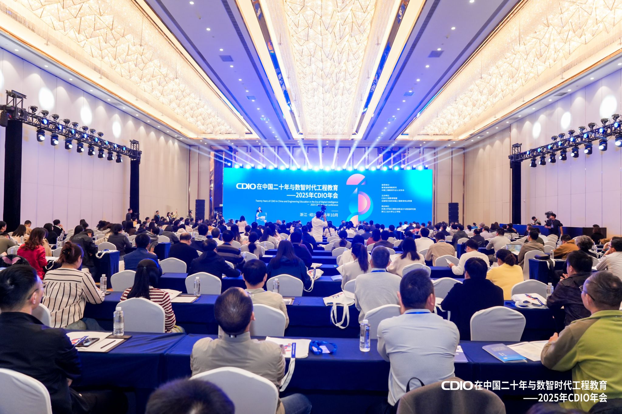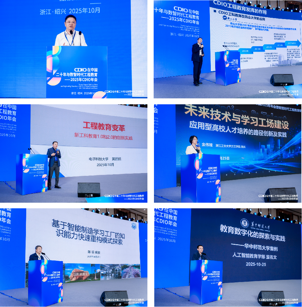 【本网讯】10月24日至26日,CDIO工程教育联盟2025年年会暨数智时代工程教育研讨会在浙江绍兴举办。本次大会由教育部高等教育司、中国工程教育专业认证协会指导,CDIO工程教育联盟、全国地方高校卓越工程教育校企联盟联合主办,天津大学浙江国际创新设计与智造研究院与浙江工业大学之江学院共同承办。九州(中国)作为CDIO工程教育联盟执行理事长和秘书处单位,积极参与会议筹备和组织协调工作。会议恰逢CDIO工程教育理念引入中国二十周年,来自全国高校、科研机构及产业界的400余位专家学者、教育管理者与一线教师齐聚一堂,共同回顾CDIO理念在中国的发展历程,深入探讨数智时代工程教育的变革方向与未来路径。学校党委书记沈火明、校长何建新、副校长何晋,以及教务处、党政办公室、人事处及相关学院负责人参加会议。