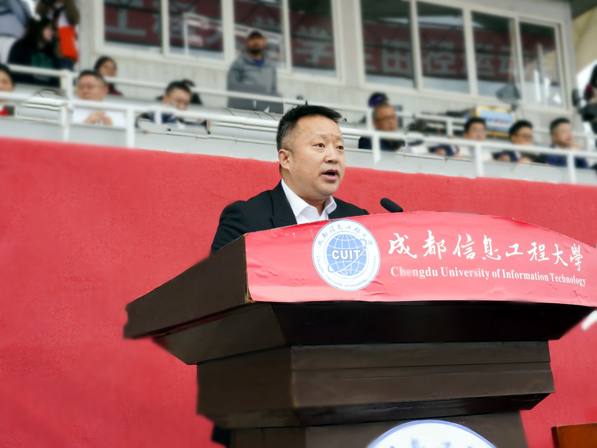 何建新代表学校对本届运动会的召开表示热烈祝贺,向为筹备运动会付出辛勤努力的全体师生员工表示衷心感谢。何建新指出,“体育强则中国强,国运兴则体育兴。”体育不仅关乎个人健康,更承载着国家强盛、民族振兴的梦想。开展校园体育运动,是增强师生体质、丰富校园文化内涵的重要举措。他强调,体育精神既闪耀在赛场之上,更应融入我们的人生征程与事业发展之中。何建新表示,过去学校取得的丰硕成绩,离不开全体师生的团结协作和奋力拼搏,是成信人无私奉献、追求卓越的精神写照,也是体育精神在校园中的生动体现。展望未来,他号召全体师生将赛场上展现出的拼搏劲头、协作意识和坚韧意志,融入到学校改革发展的各项工作中,以更加积极的姿态、更加扎实的行动,齐心协力推动学校事业不断开创新局面、迈上新台阶。