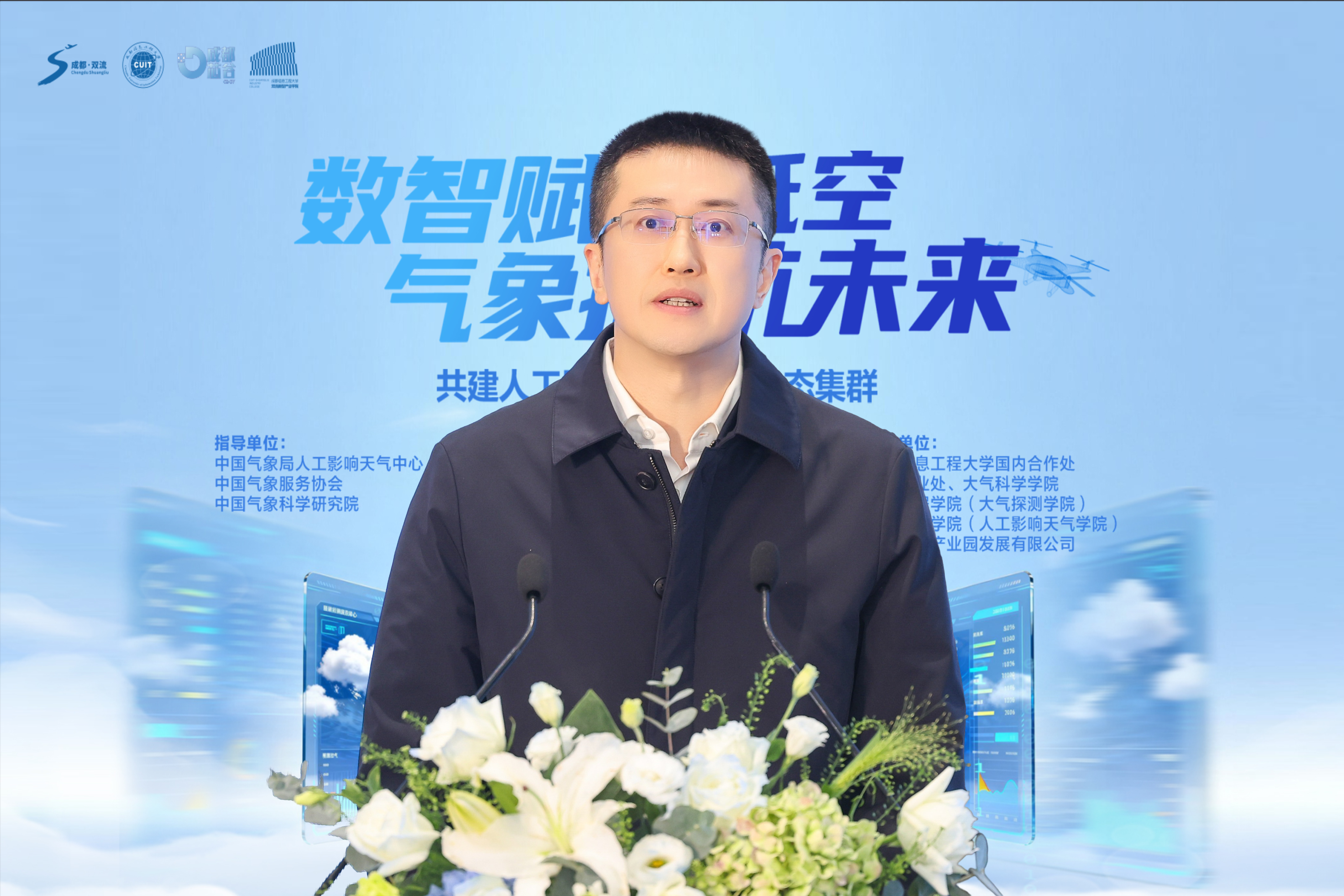 【本网讯】11月10日下午,由学校与成都芯谷发展服务局联合主办的“低空无人机与人工影响天气产教融合论坛”在双流新型产业学院举办。论坛以“数智赋能低空,气象护航未来——共建(成都双流)人工影响天气产业生态集群”为主题,汇聚了来自气象、航空、教育、科技及企业界的众多领导、专家学者与行业代表约150人,共同探讨低空无人机与人工影响天气领域的深度融合与协同发展路径。