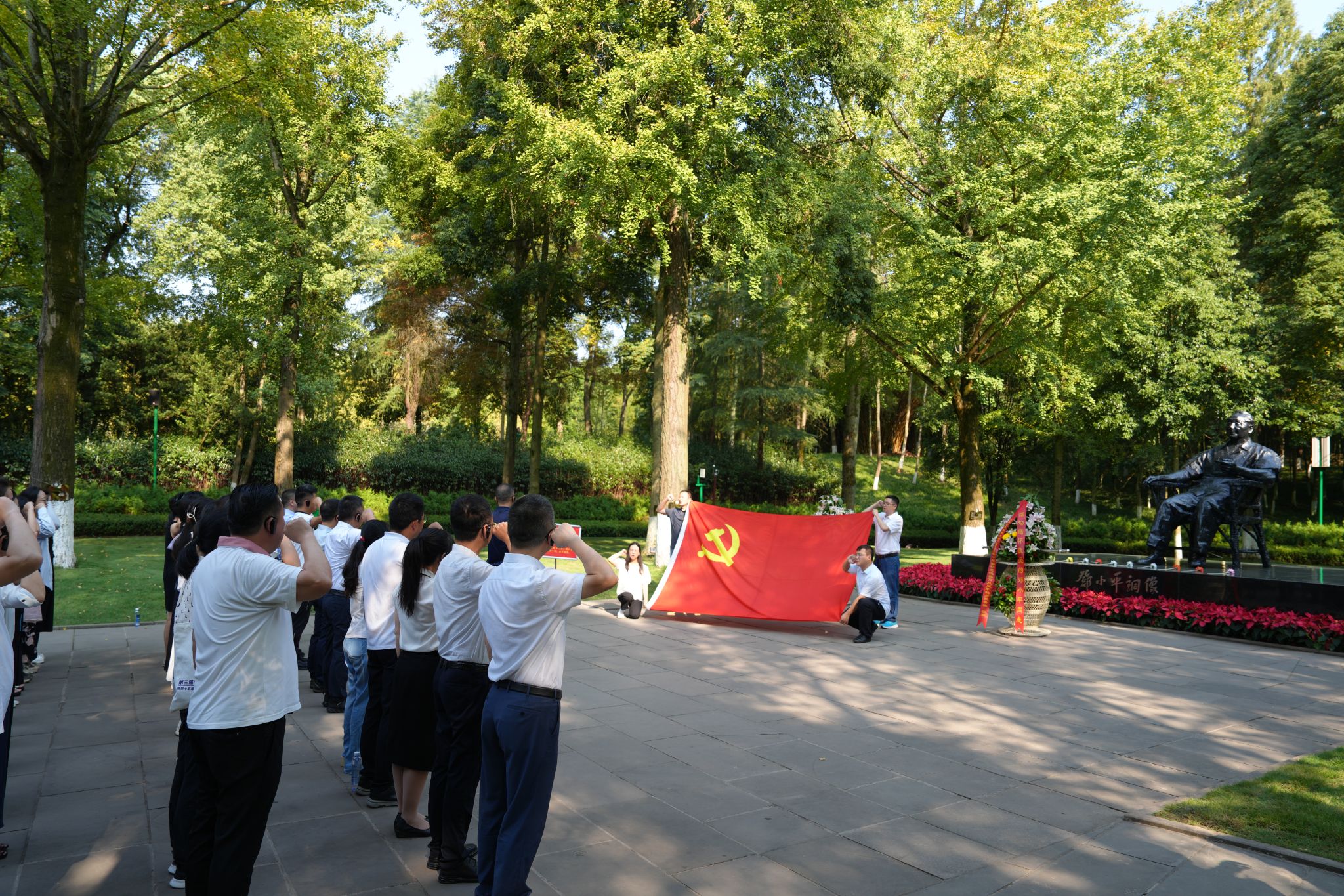 在小平同志铜像前敬献花篮、重温入党誓词