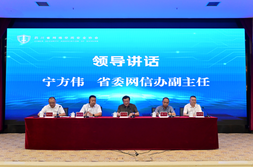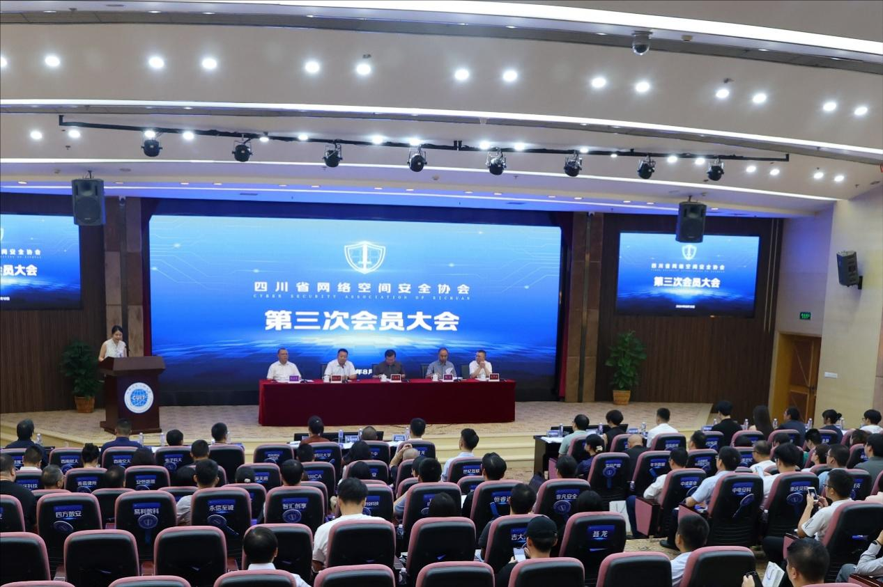 第二阶段会议,四川省网络安全协会第三次会员大会在学校国际会议厅隆重召开。省委网信办副主任宁方伟、协会理事长舒红平、省委网信办网安处处长魏杰、协会党委书记王伊洛、协会秘书长周益民、协会秘书处及全体会员单位代表出席了大会。