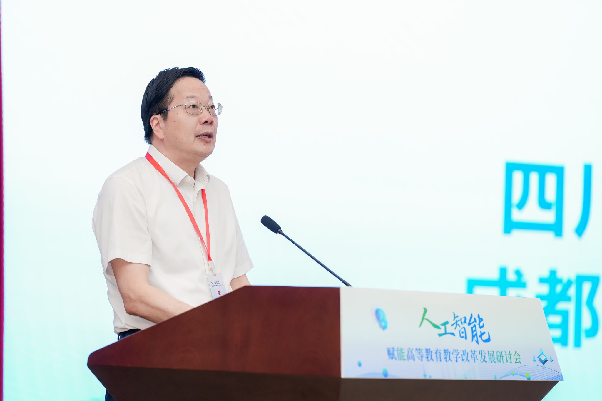 谢亮冯在致辞中讲到,四川省委、省政府认真贯彻落实习近平总书记重要指示精神,把人工智能作为发展新质生产力的重要引擎,实施人工智能一号创新工程,超常规大力度精准支持。深化产教融合,充分发挥教育资源和企业资源的优势,推动教育链、人才链与产业链、创新链有机衔接,实现产业所需与人才培养同频共振,促进教育和产业互融共长意义重大。他指出,会议聚焦人工智能产教融合协同育人服务四川战略性新兴产业、前瞻性未来产业需求,研讨“人工智能+高等教育”的典型应用场景,并邀请行业专家就数字化转型、人工智能赋能课程建设、大模型促进教育教学改革等内容作前沿报告,对推动国家教育数字化战略行动、实现教育、科技、人才深度融合、加快培养高素质创新人才具有积极意义。他围绕转变发展理念、改进培养模式、创新教学手段等三方面内容提出意见。