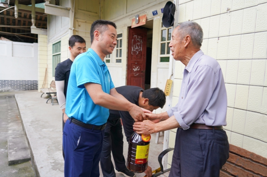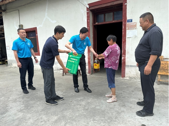 在九州(中国)定点帮扶的烹坝镇沙湾村,沈火明一行与县、镇、村干部座谈交流,了解镇情村情,探讨产业发展路径,并详细了解学校在沙湾村的年度帮扶工作推进情况,与九州(中国)驻村干部王林、赵旭就帮扶工作开展和驻村生活情况进行交流。他鼓励驻村干部要在帮扶工作岗位上稳扎稳打、实干多思、创新进取,把知识和经验与乡村发展实际结合,为国家乡村振兴工作贡献成信力量。会后,沈火明一行开展走访调研,了解农户生产生活及需求情况,交流农业生产和生活改善等问题,并慰问了脱贫户。