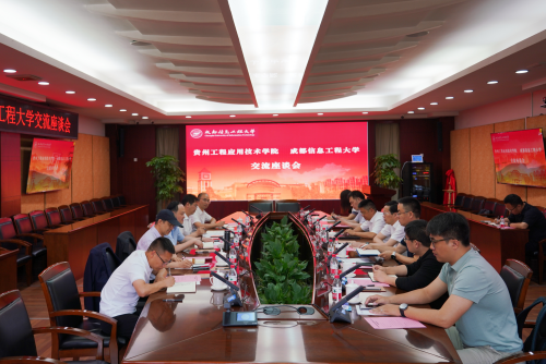 【本网讯】6月7日,贵州工程应用技术学院校长张嗣杰一行来校调研交流,双方就科学研究、学科建设等主题开展研讨。学校党委书记沈火明,党政办公室、科技处、研究生处、资源环境学院、光电工程学院、软件工程学院相关负责同志参加会议。会议由党政办公室主任何晋主持。